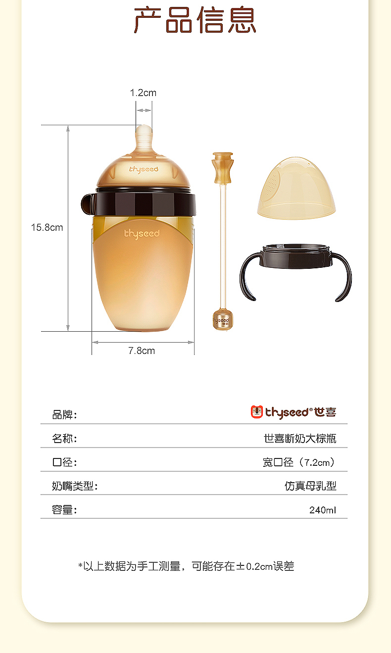 世喜断奶硅胶奶瓶240ml新生婴儿仿母乳超软重力球吸管把手宽口径防胀气