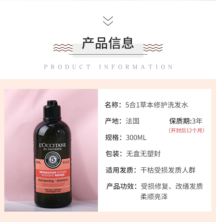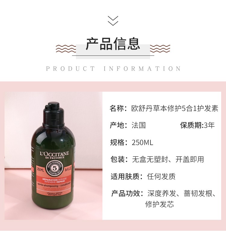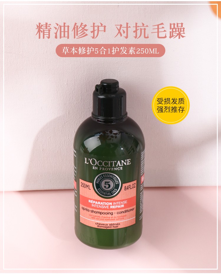 欧舒丹(L'OCCITANE)5合1草本精华菁纯修护护发素250ml 修护干枯毛躁分叉丰盈蓬松 117656/117657