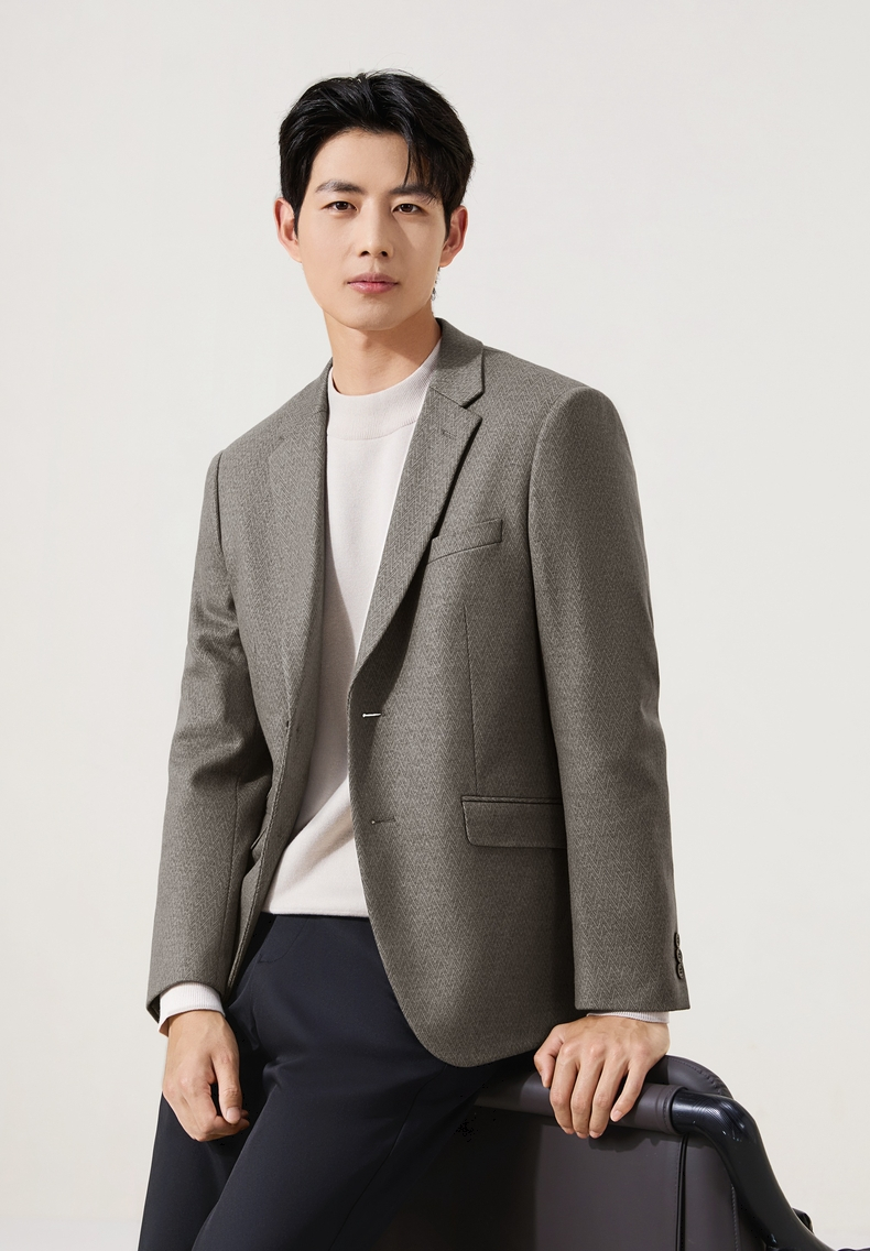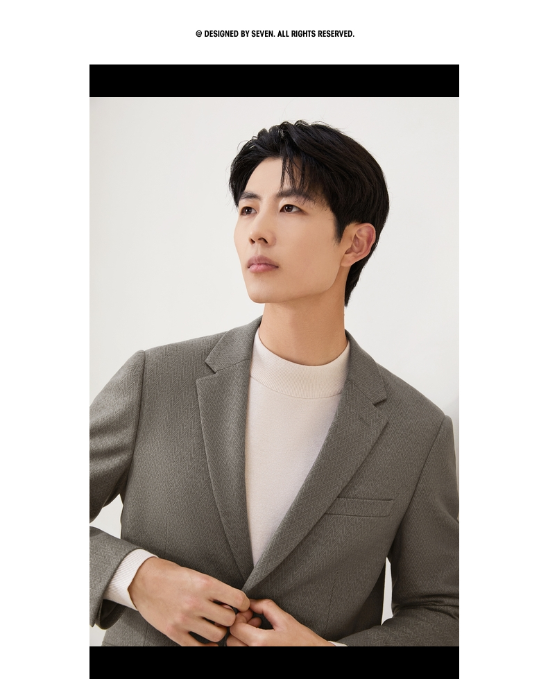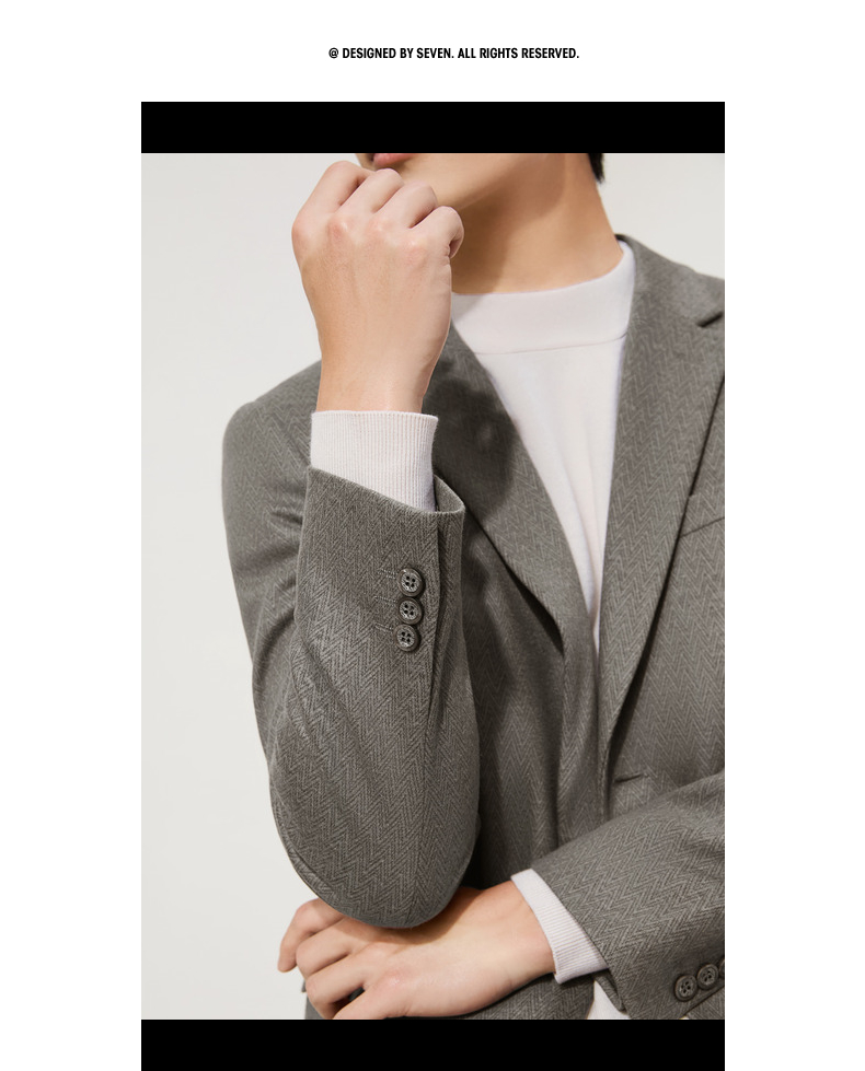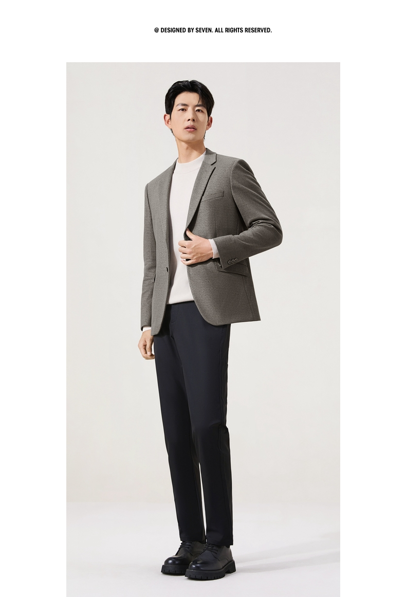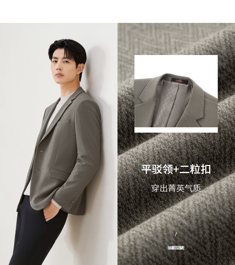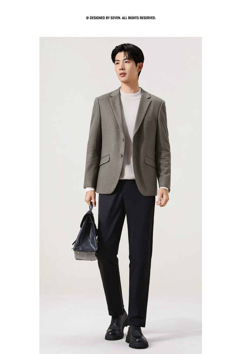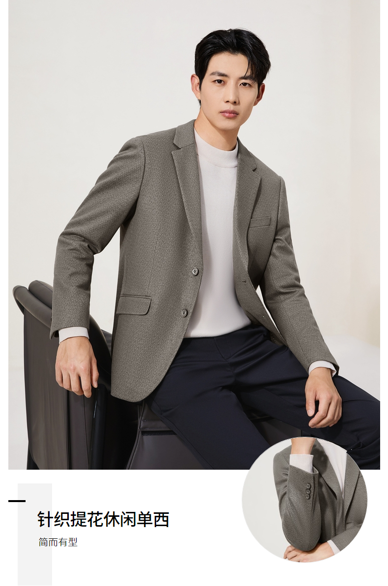 【含羊毛】柒牌休闲西服2025秋季平驳领针织肌理抗皱简约青年单西129C70230