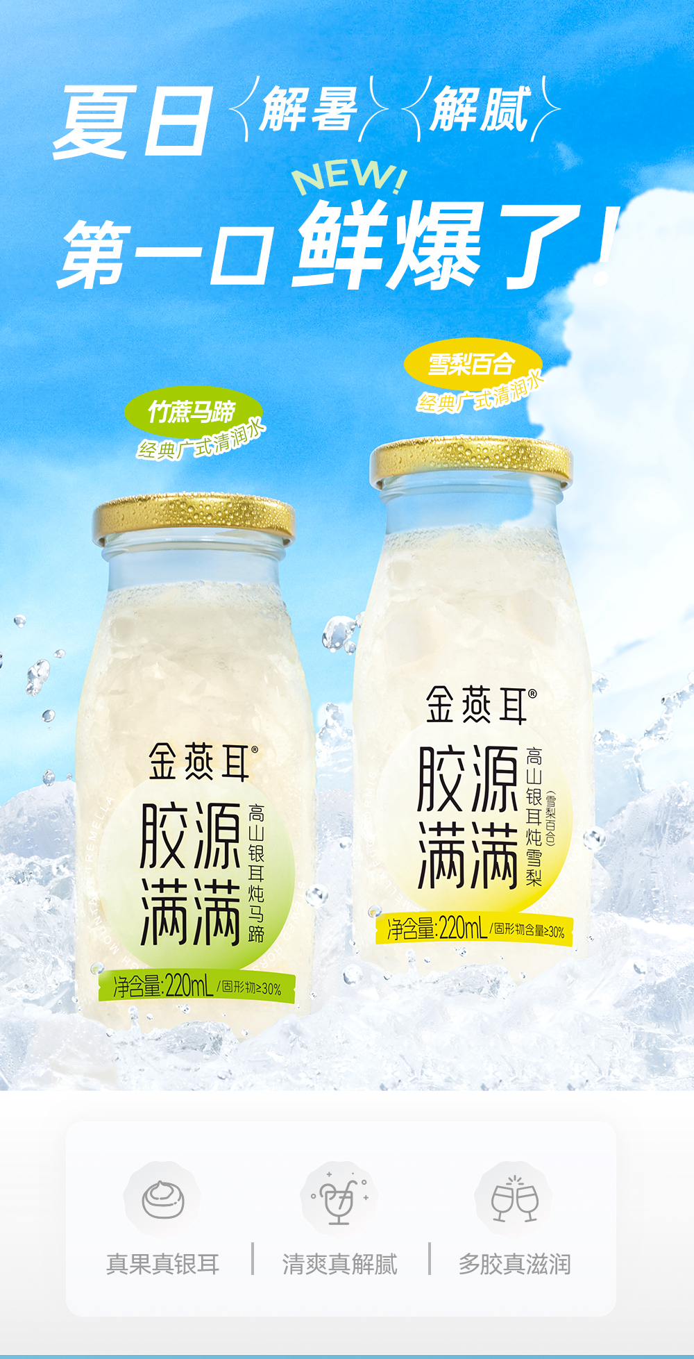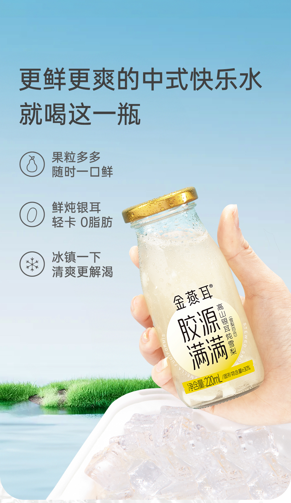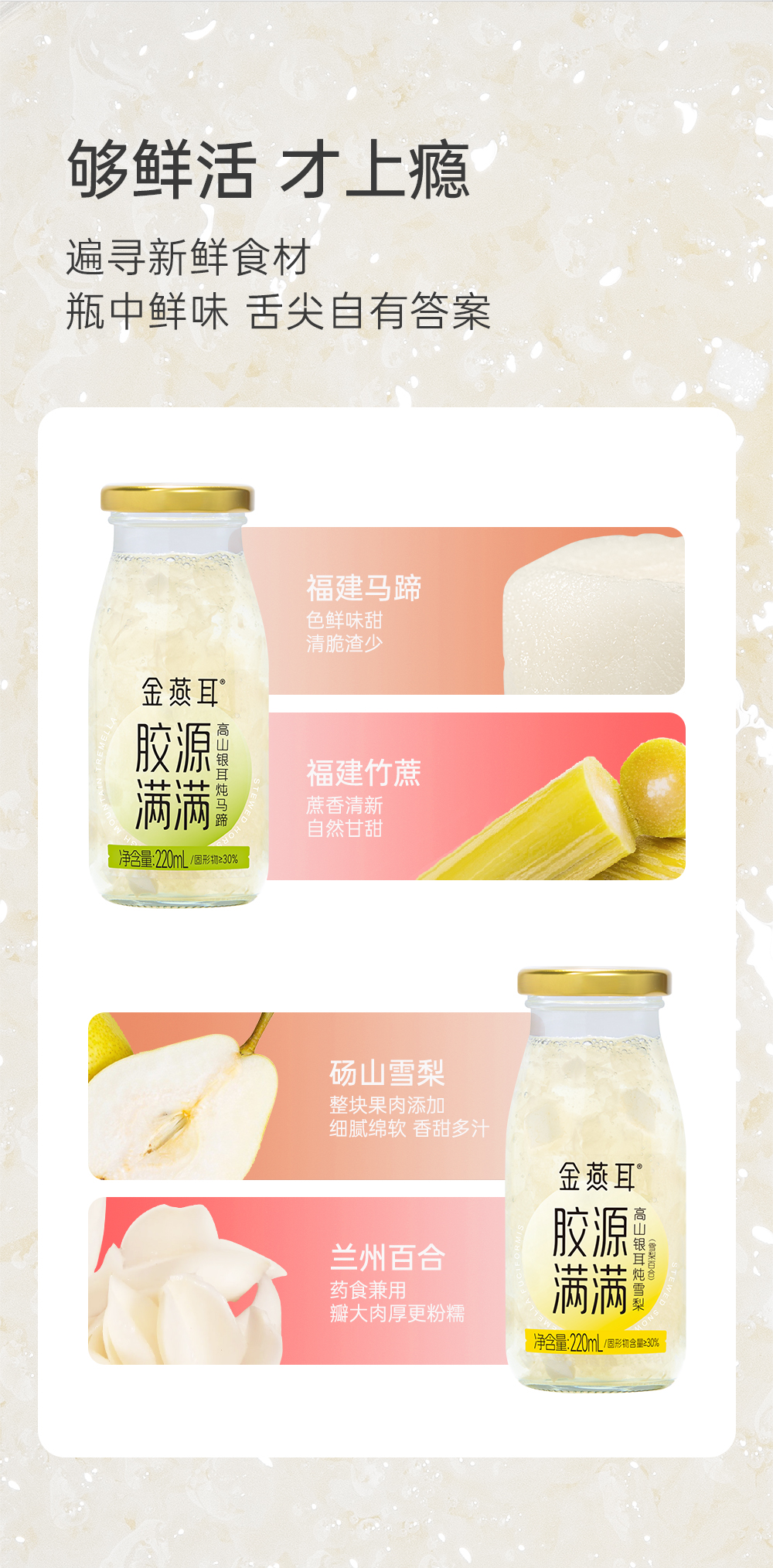 金燕耳高山银耳炖竹蔗马蹄/雪梨百合鲜露 有机鲜炖银耳 开盖即食 一箱6瓶装(220ml/瓶)代餐饱腹银耳羹 (每箱单独快递,拍两件以上的仙女不要漏拿快递啦)