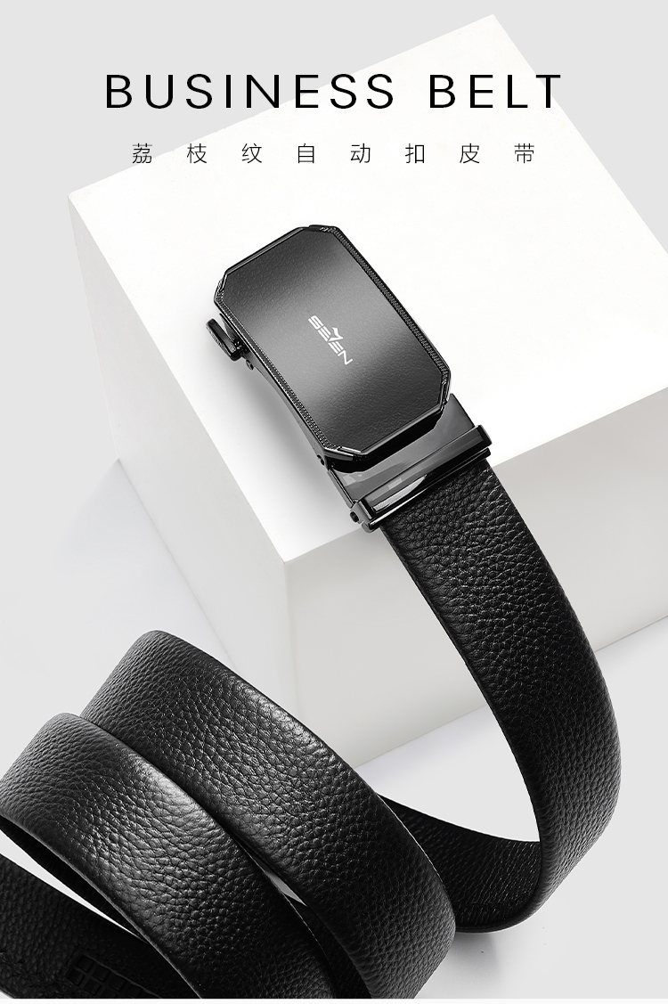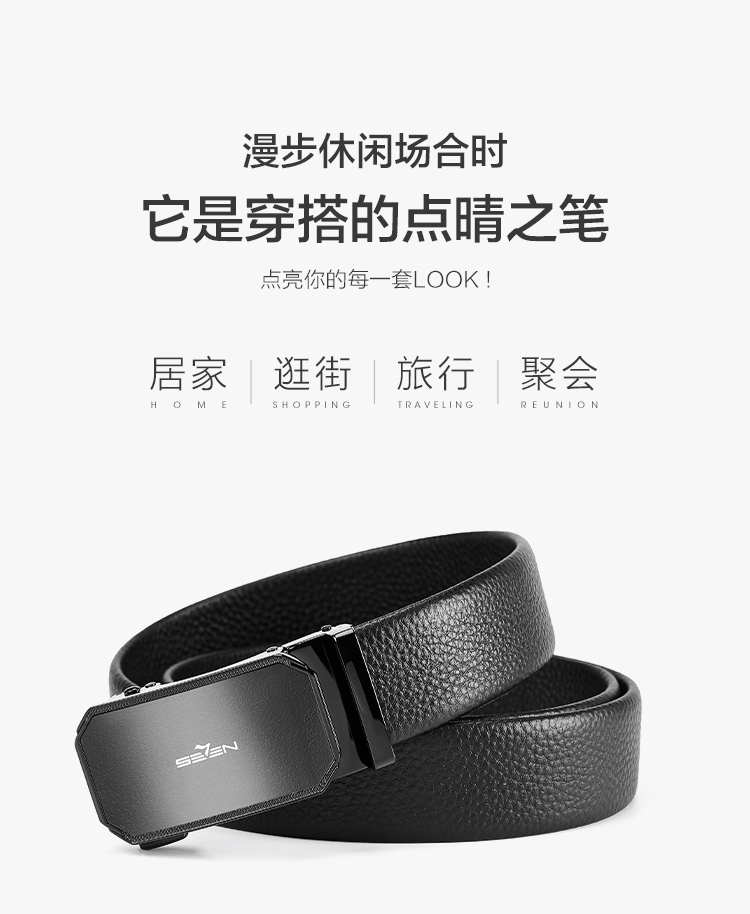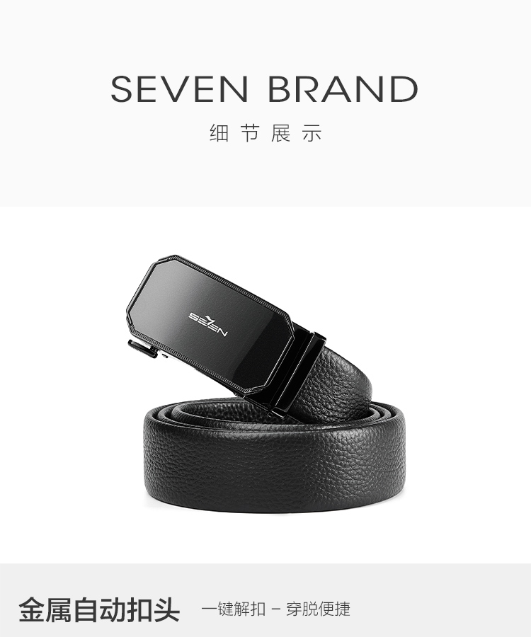 【婚礼季】柒牌皮带男士自动扣头层牛皮商务经典正装2025年新款荔枝纹裤腰带129P70120