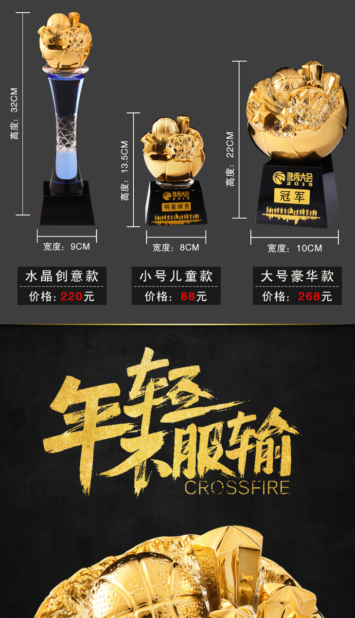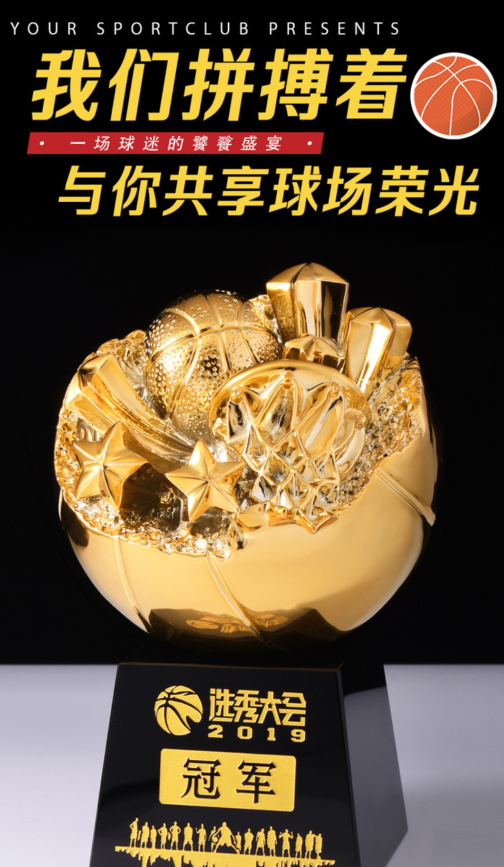 盛典 篮球比赛奖杯冠军奖品创意灌篮纪念品mvp运动会俱乐部奖杯