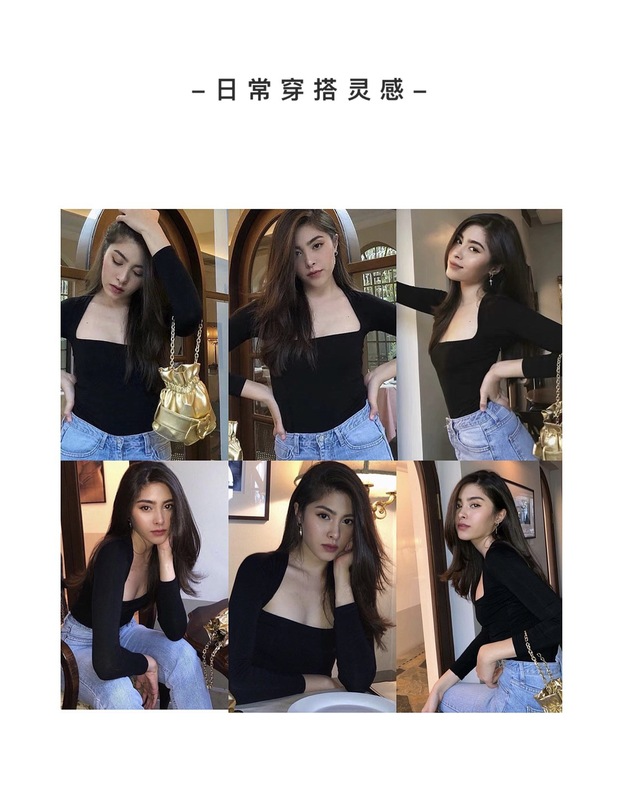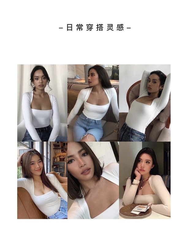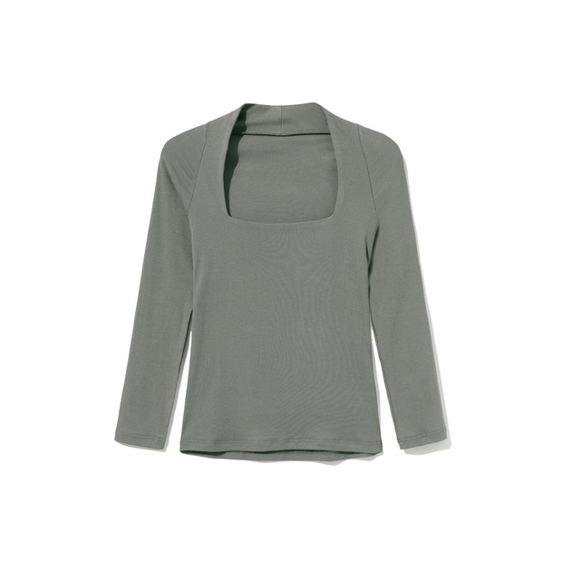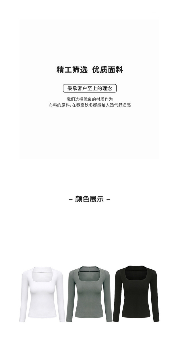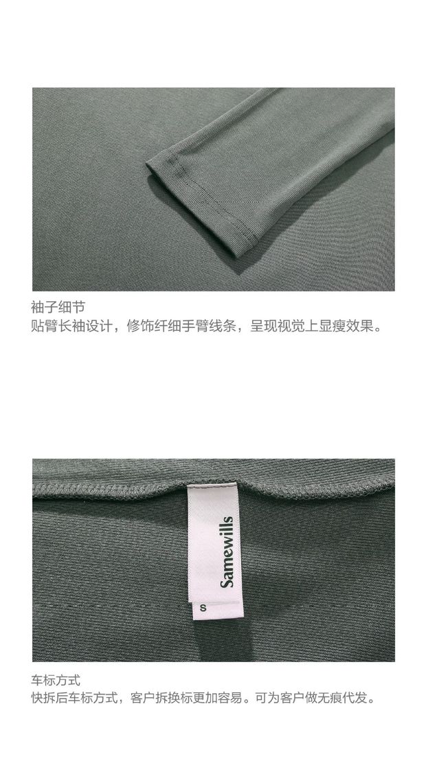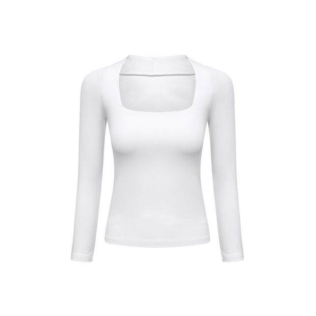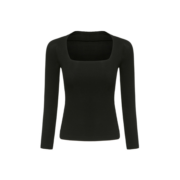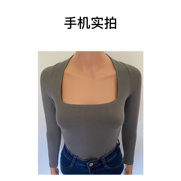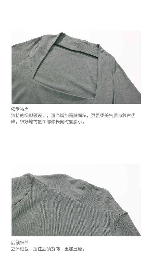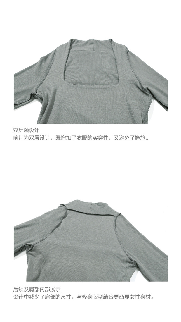 【授权商品】samewills新款性感掐腰套头纯色长袖方领T恤秋冬【215119】