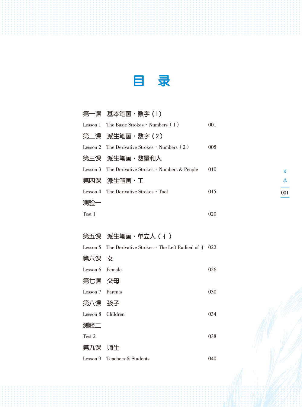 《北大慕课教材·汉字》与“北大慕课-汉字课”完全同步。分为第一册、第二册、第三册和第四册。每册教材分为40课,每课6个汉字,合计有汉字240个。教材除所教授的汉字、生词及其英文翻译外,还需配以相应的图片,以增加教材的趣味性,同时并增加汉字的摹写练习,以巩固所学知识。这一设计可以弥补线上书写练习的缺失。课后有形式多样的练习题,每四课附有一套百分制自测题。