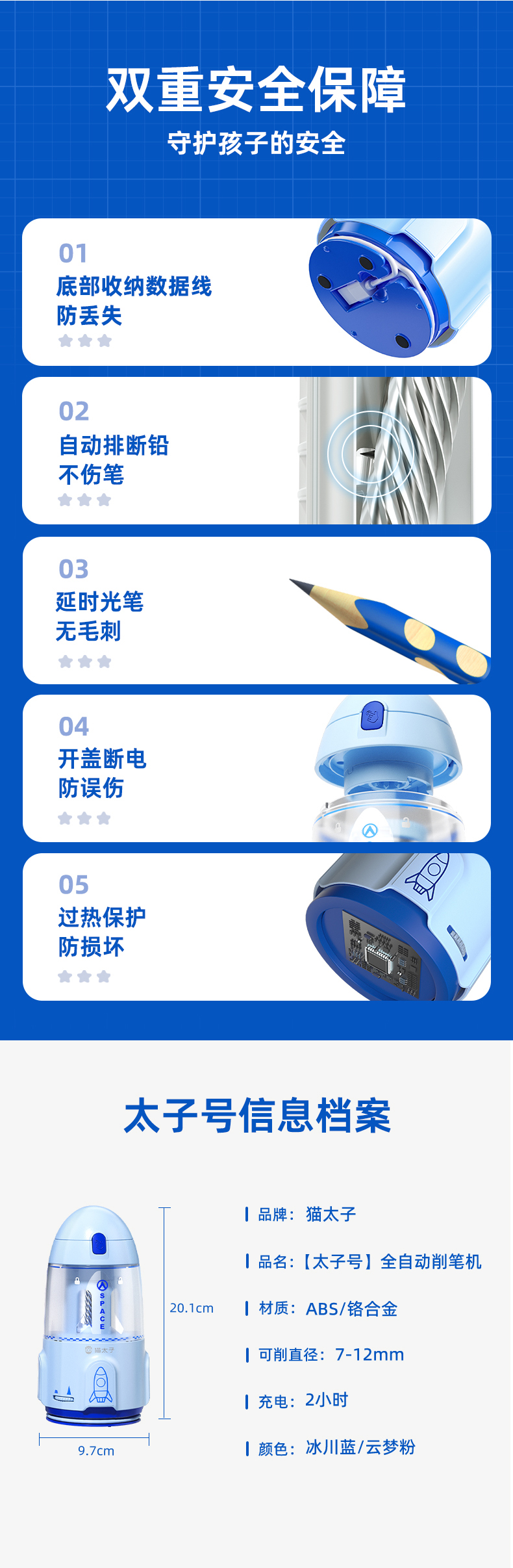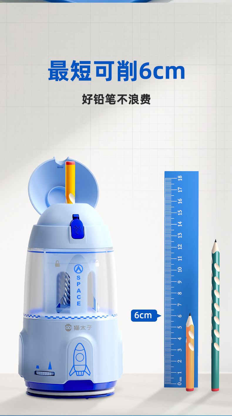 【开学季】猫太子全自动削笔机大口径电动削笔器卷笔刀粗杆转笔刀小学生专用儿童三角铅笔刀削器全自动幼儿园文具套装 0807