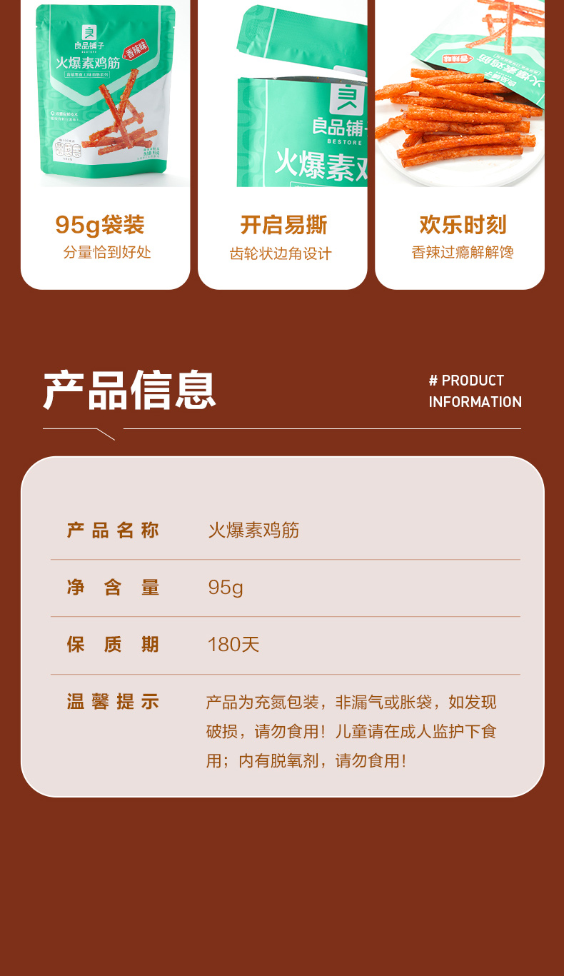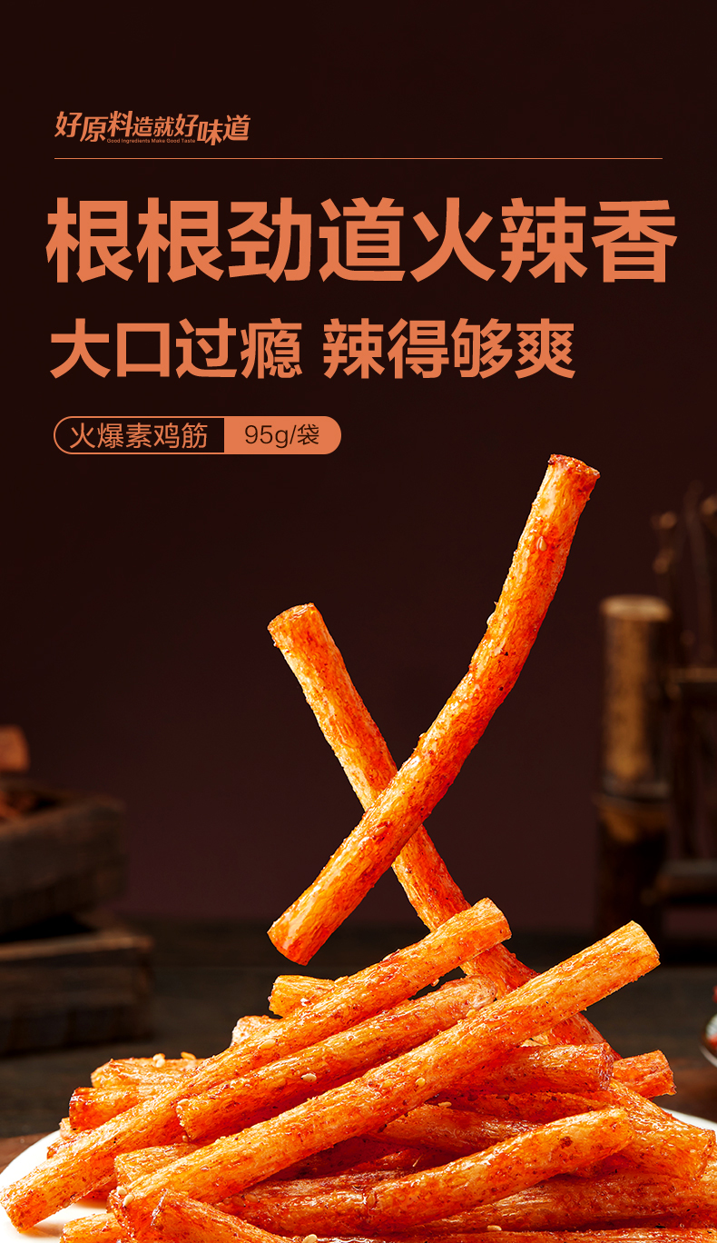 [小滋心选] 良品铺子|【99元任选20件】火爆素鸡筋(香辣味)95克(单拍不发货)