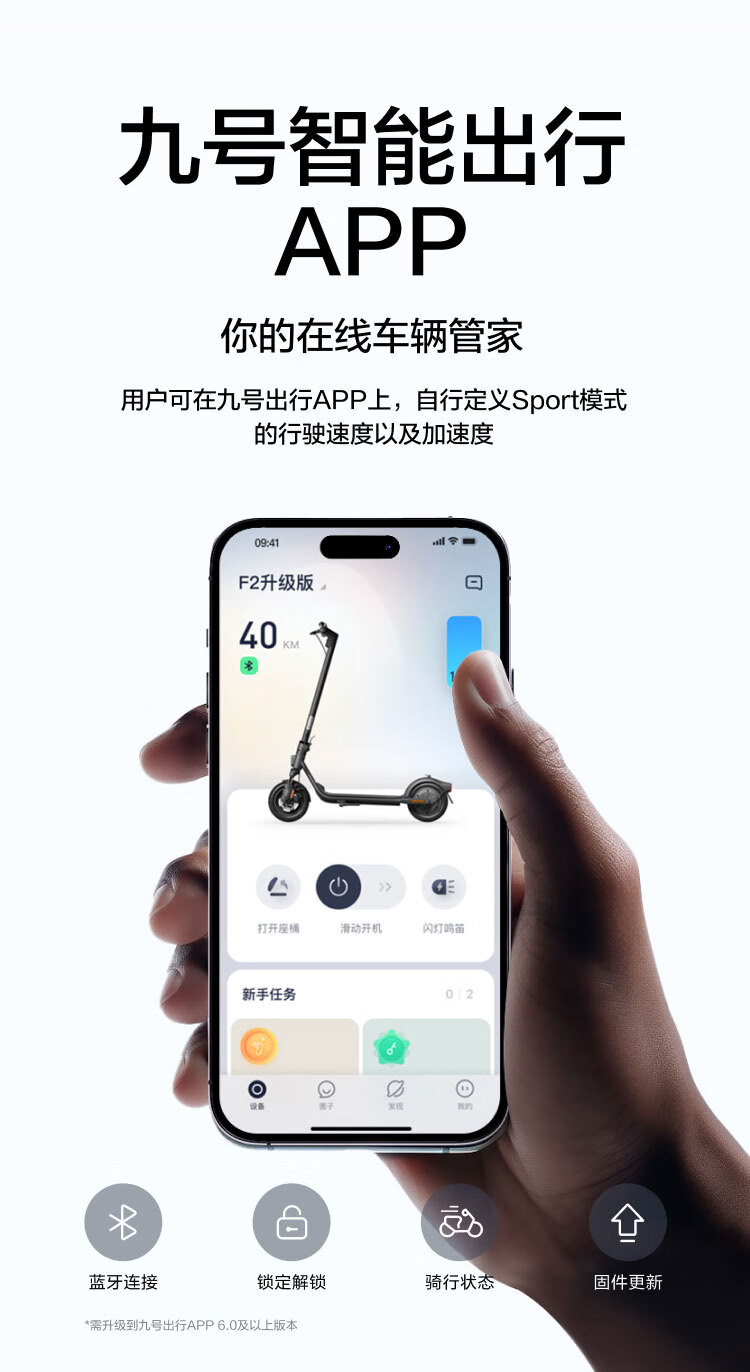 九号(Ninebot)电动滑板车F2升级款 前减震滑板车成人学生便携智能可折叠防滑