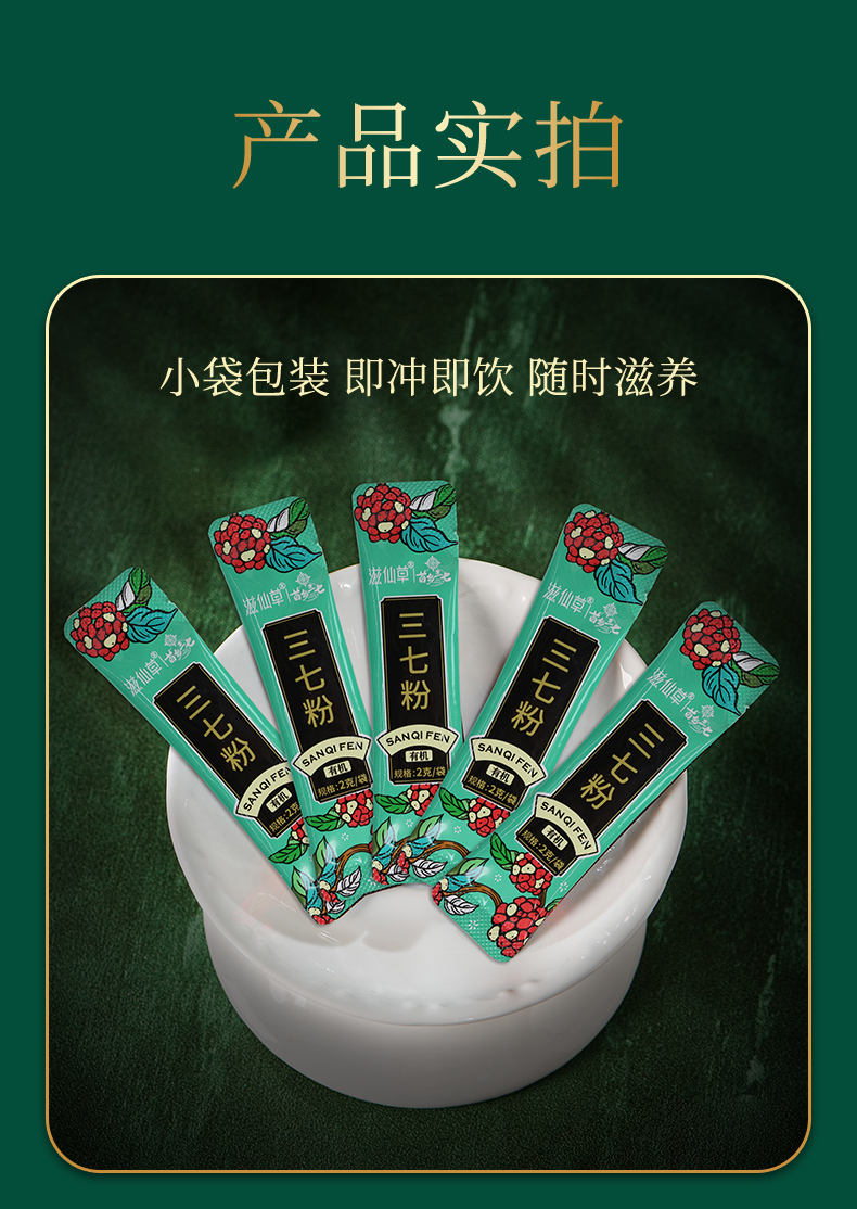 有机三七粉泡水:活血化瘀、补血益气在文山当地,三七被当作一道美食,例如三七炖鸡,三七煮粥,凉拌三七根须/花,三七粉/花炖鸡蛋等等。有机三七炖鸡:增强体质,益气养血有机三七牛奶蒸蛋羹:适合生长发育期的少年、生完宝宝(非母乳期间)的妈妈、身体虚弱人群、牙口不好的老人家有机三七山药桂圆粥:健脾益肾、益气养血、祛瘀生新有机三七粉+菊花:缓解血液淤堵、身体酸痛、咽喉干痛有机三七+橙汁+藕汁+蜂蜜:适合心烦易怒、口苦、睡觉流口水、容易醒、多梦症状有机三七花虫草花凉拌:清热解毒,平肝降压,补肾益精有机三七花+菊花泡水:适用于肝阳上亢引起的头痛、头晕、目赤肿痛、血压高、血管神经性头痛等什么人,什么时候不适合吃?
