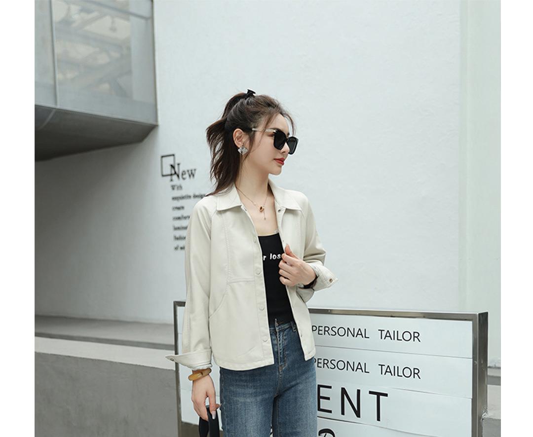 韩版短款皮衣外套女2023秋季新款翻领休闲夹克水洗PU皮衣女