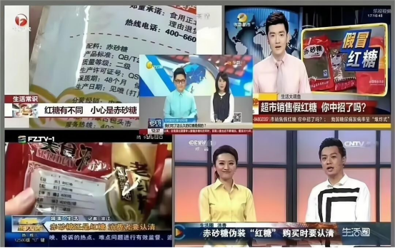 *赤砂糖——通过磷酸、硫磺等进行白糖脱色之后的残渣废料加工而成,价格低廉,营养价值低。 *掺假红糖——由于纯红糖生产成本高昂,部分工厂加入大量白糖混合而成,口感介于赤砂糖和纯红糖之间,不宜久食。