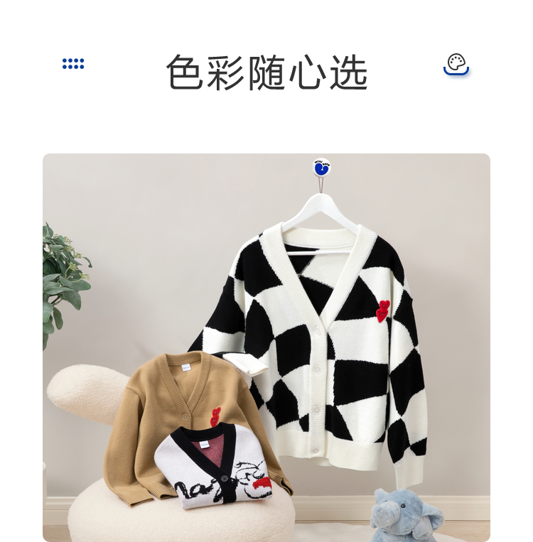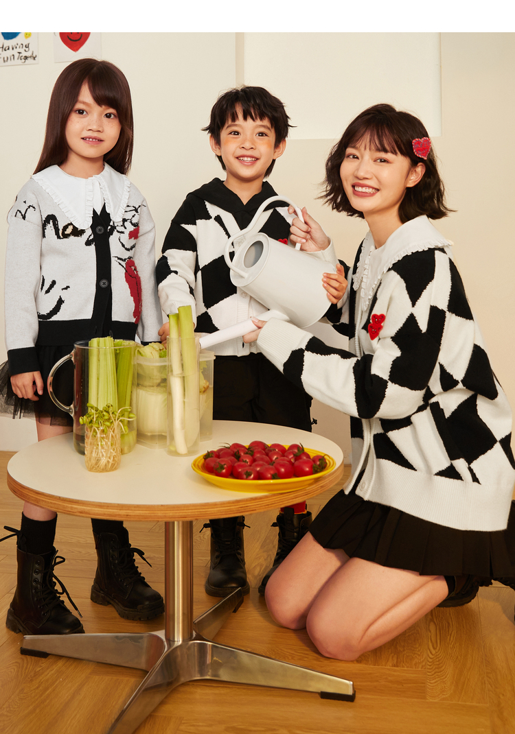 【mini亲子】迷你巴拉开衫秋季母女装女童宝针织毛衣外套
