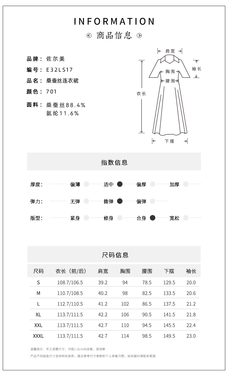 佐尔美夏季新款 优雅气质桑蚕丝真丝连衣裙女E32LS17