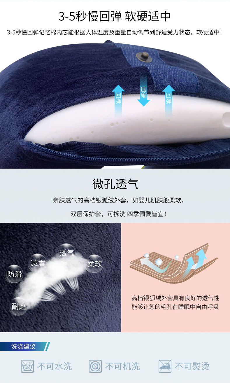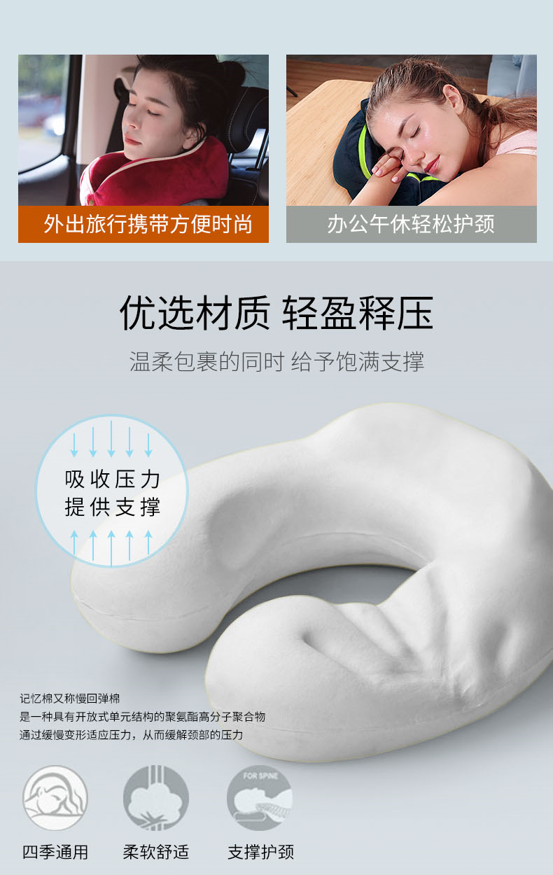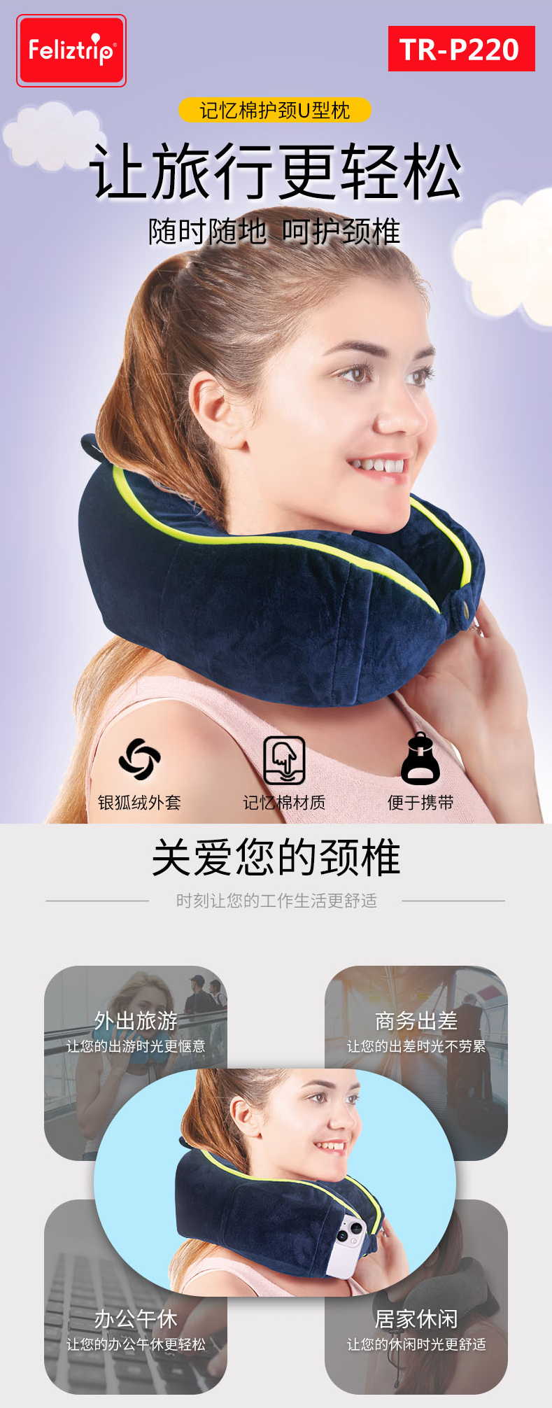 Feliztrip斐利斯 慢弹记忆棉U枕搭飞机高铁午睡神器防菌网纱可拆洗外套 TR-P220