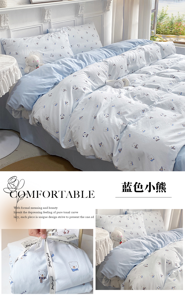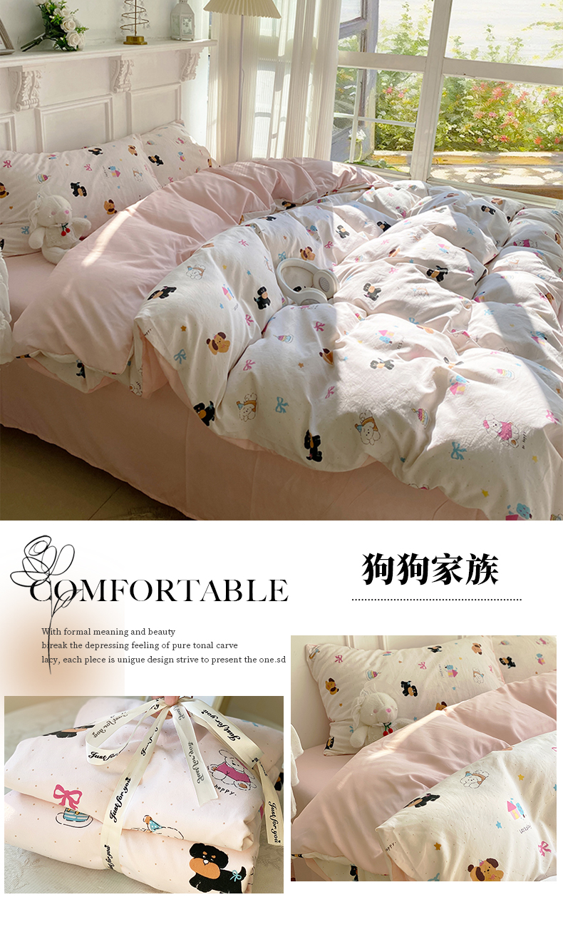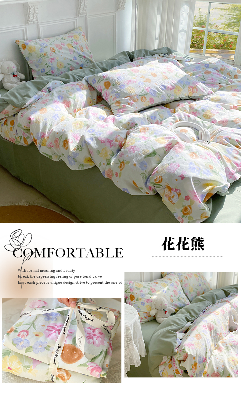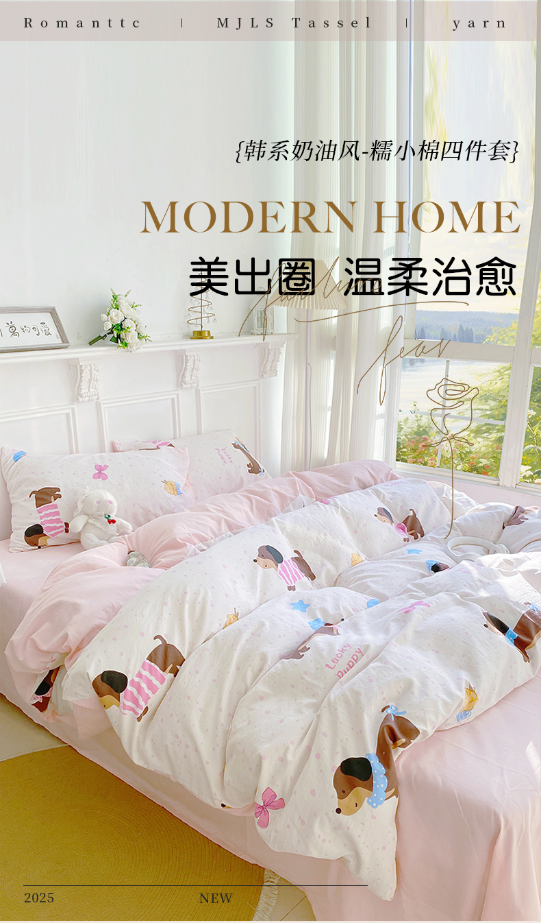 【YW】无忧购韩系奶油风水洗糯小棉四件套(截单3-5天发货)