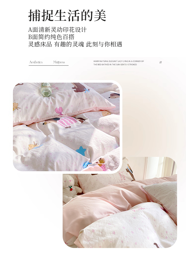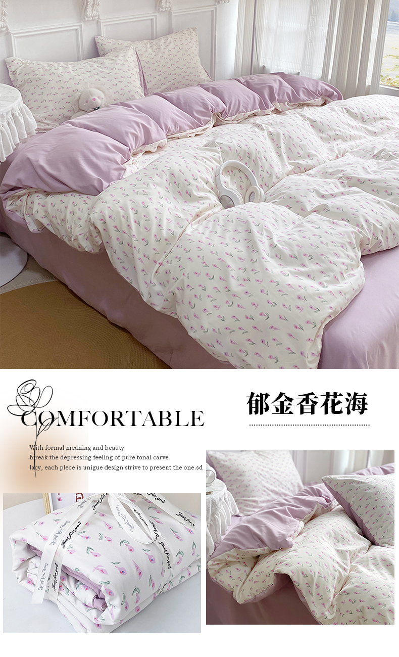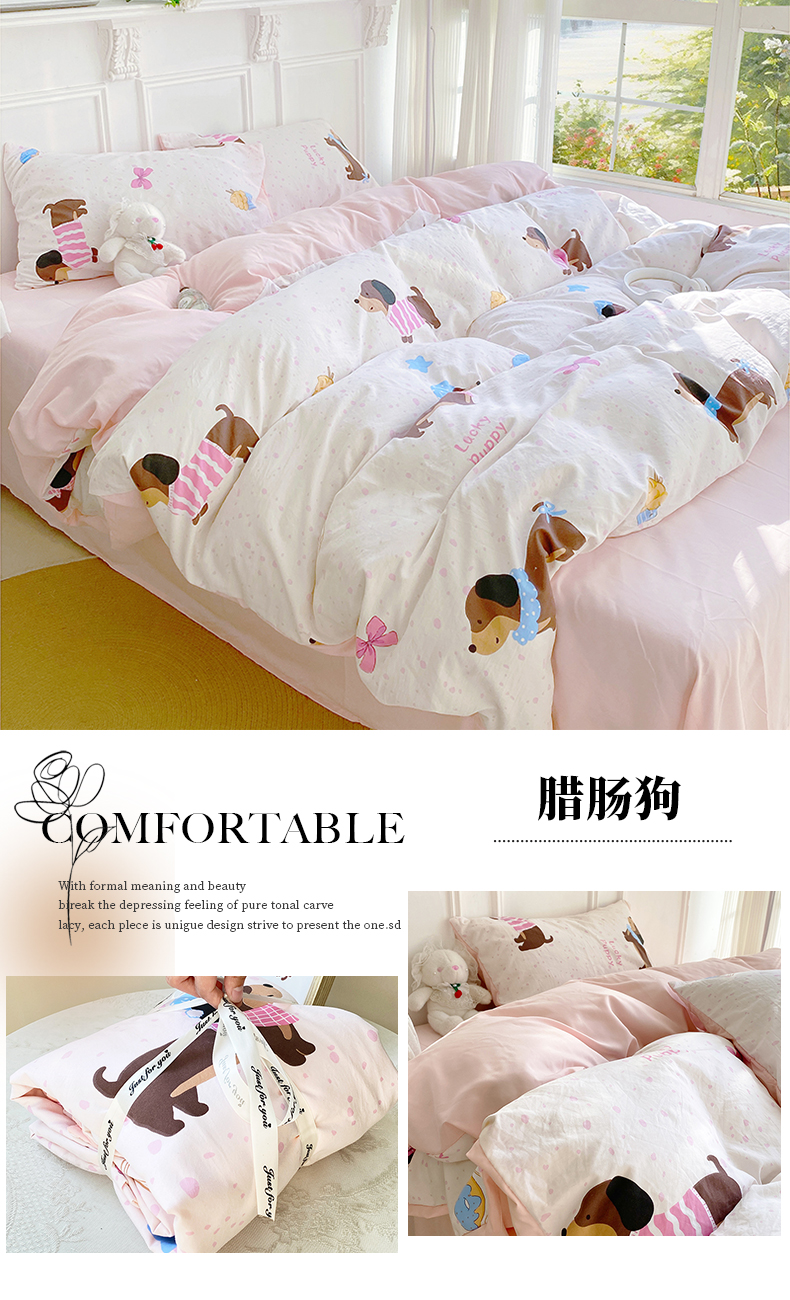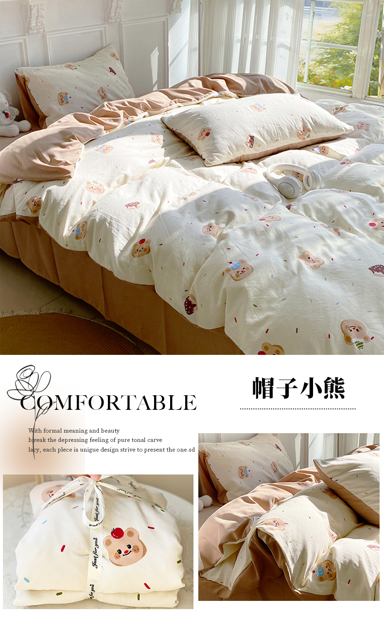 【YW】无忧购韩系奶油风水洗糯小棉四件套(截单3-5天发货)