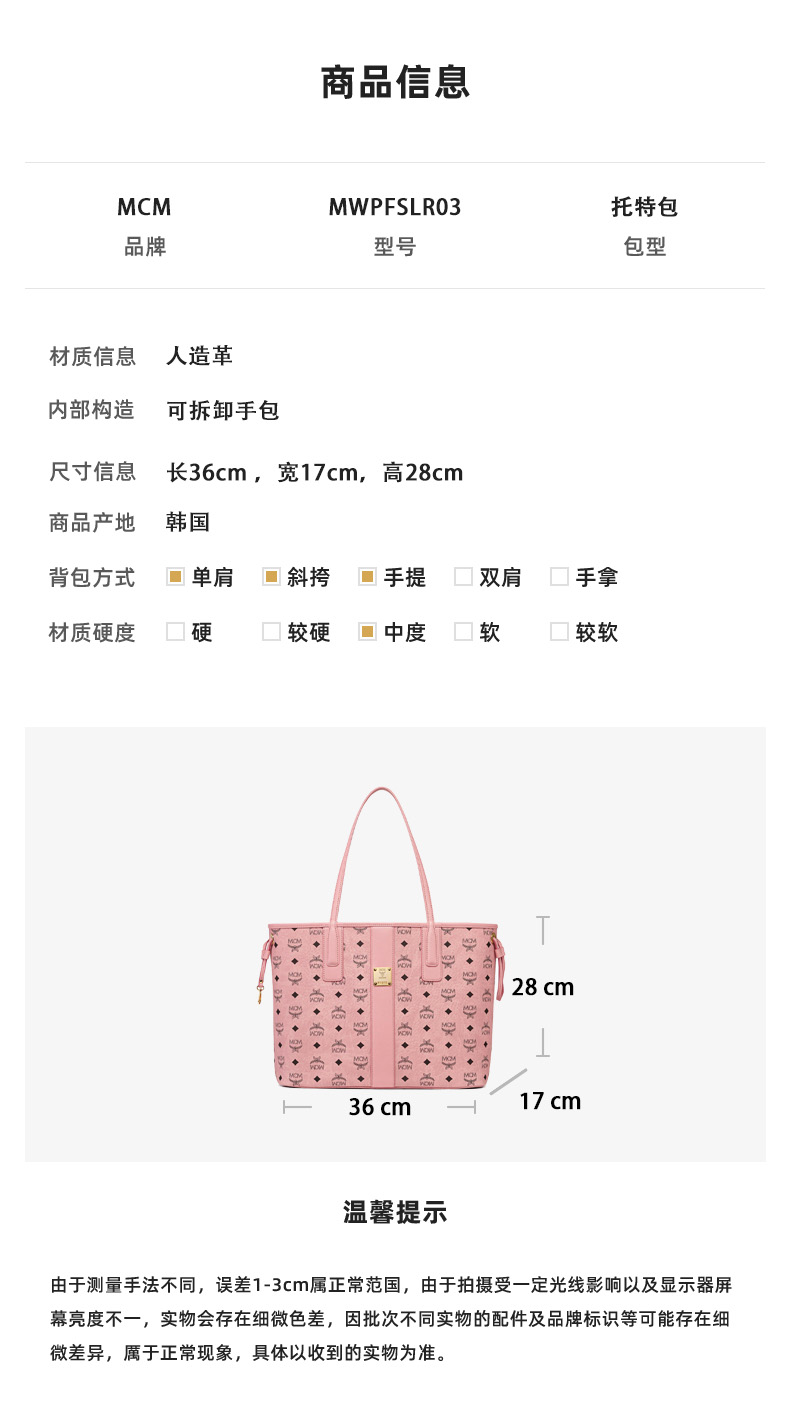 MCM 专柜款中号女士皮质单肩手提子母包MWPFSLR03PZ001