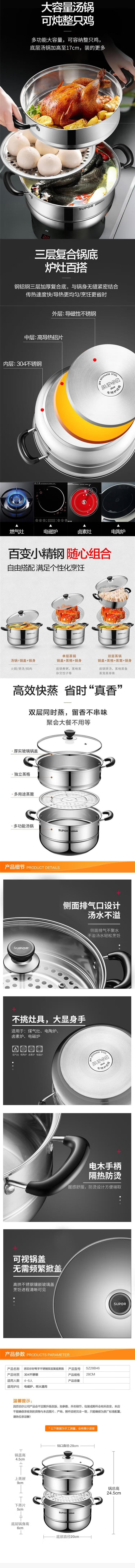 苏泊尔(SUPOR)(510543)蒸锅304不锈钢双层加厚复底汤锅蒸笼燃气电磁炉通用 SZ28B46