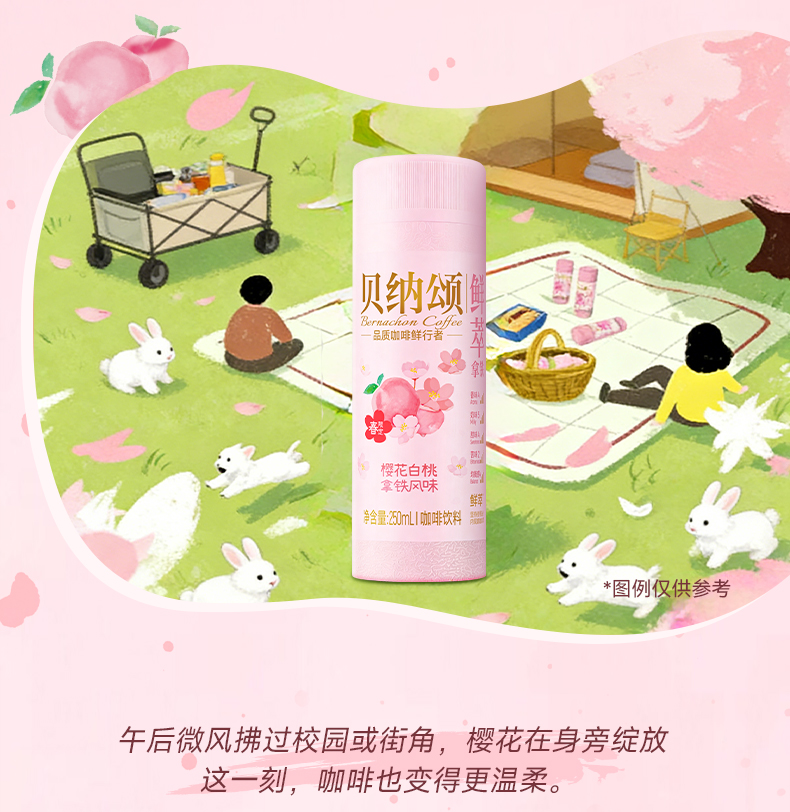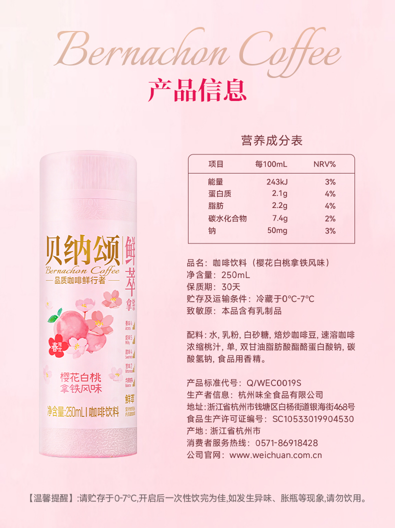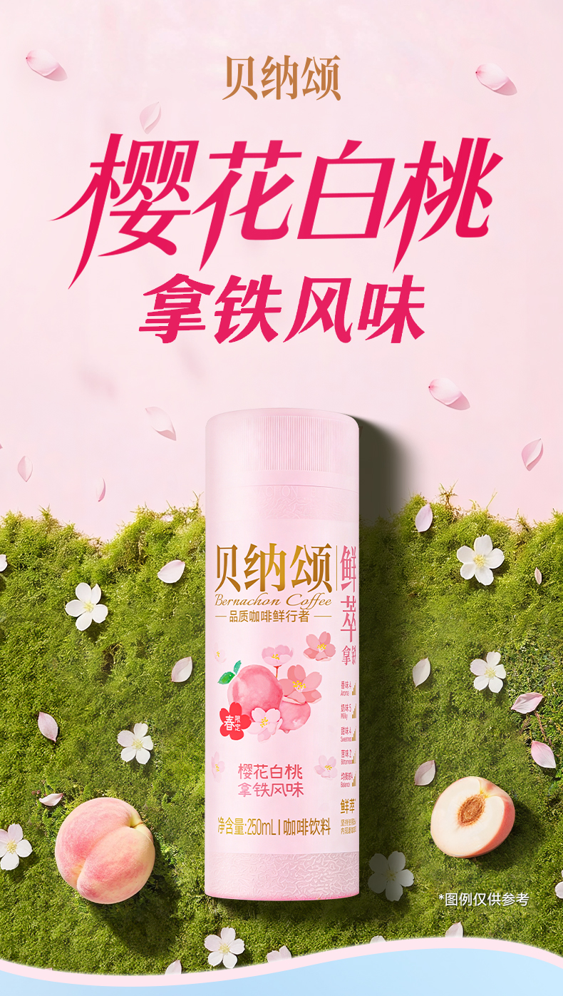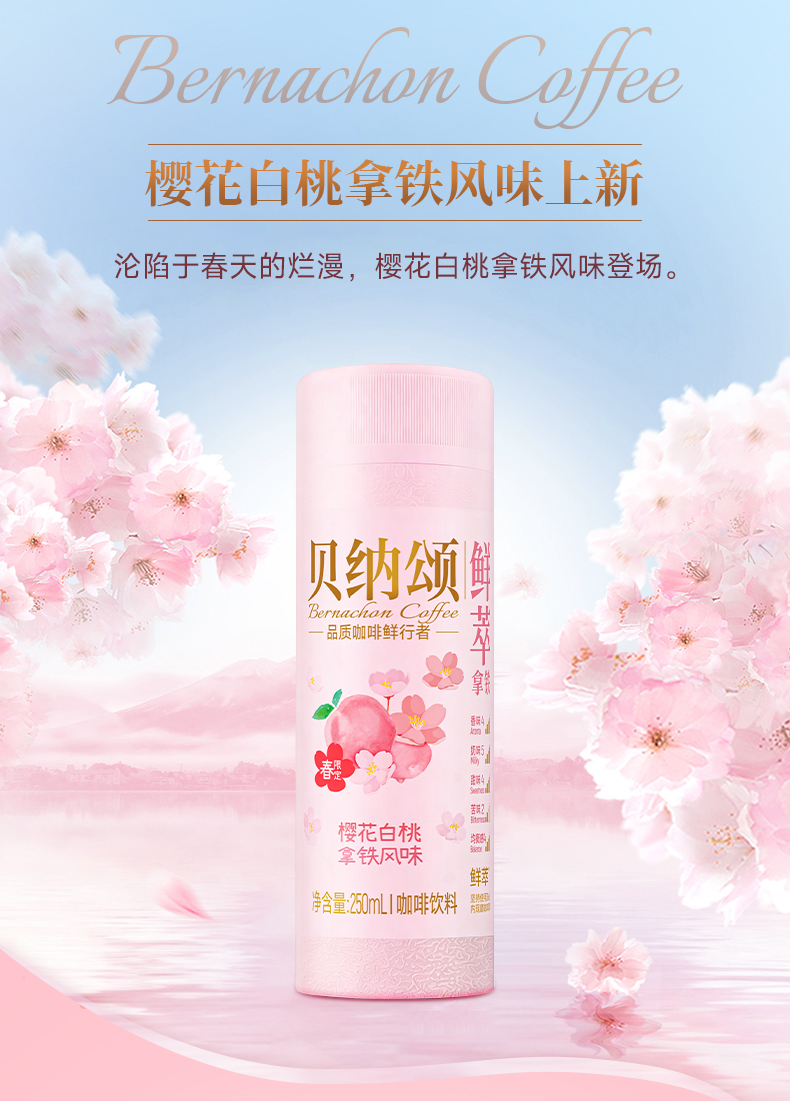 【新品】味全贝纳颂樱花白桃即饮咖啡250ml/瓶 拿铁风味咖啡饮料
