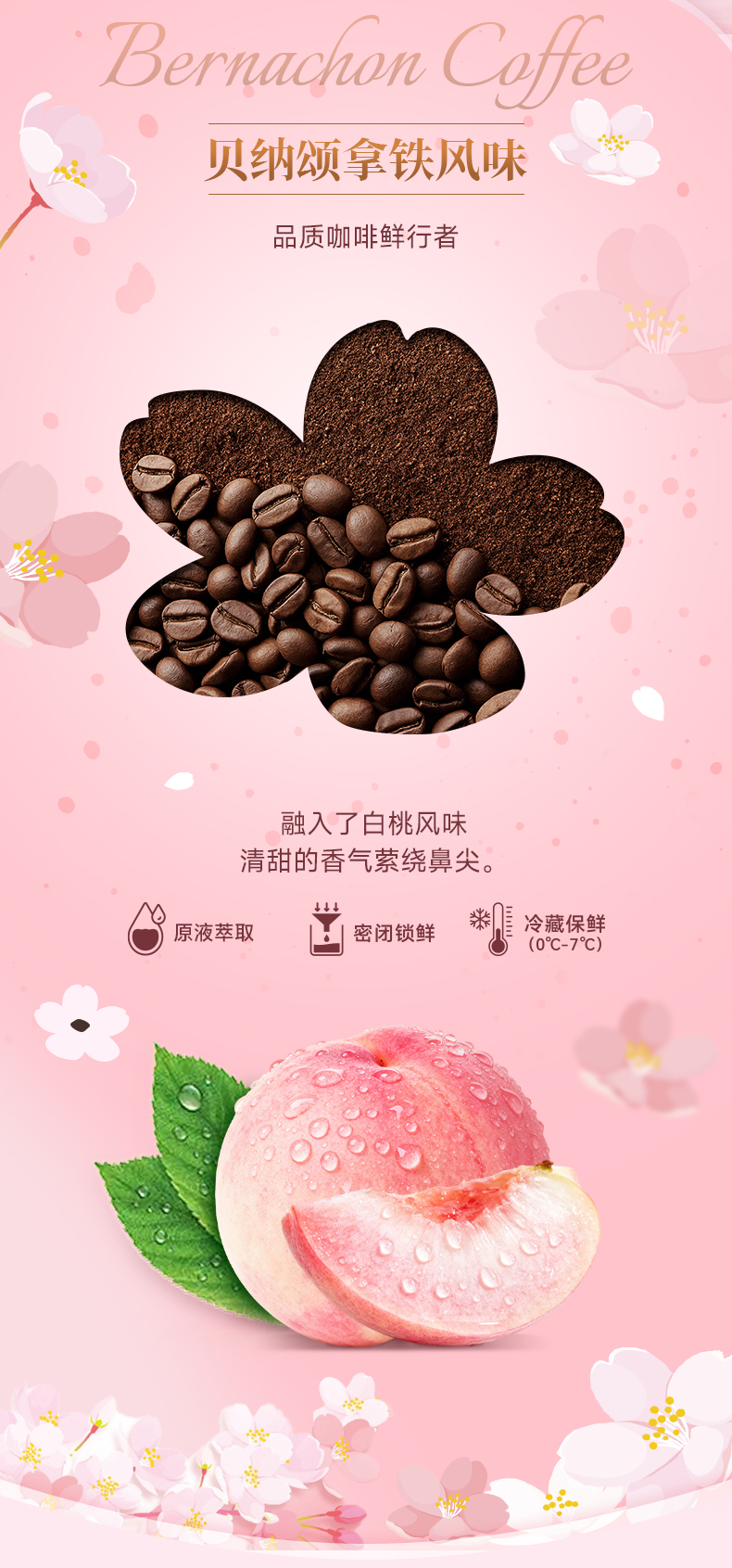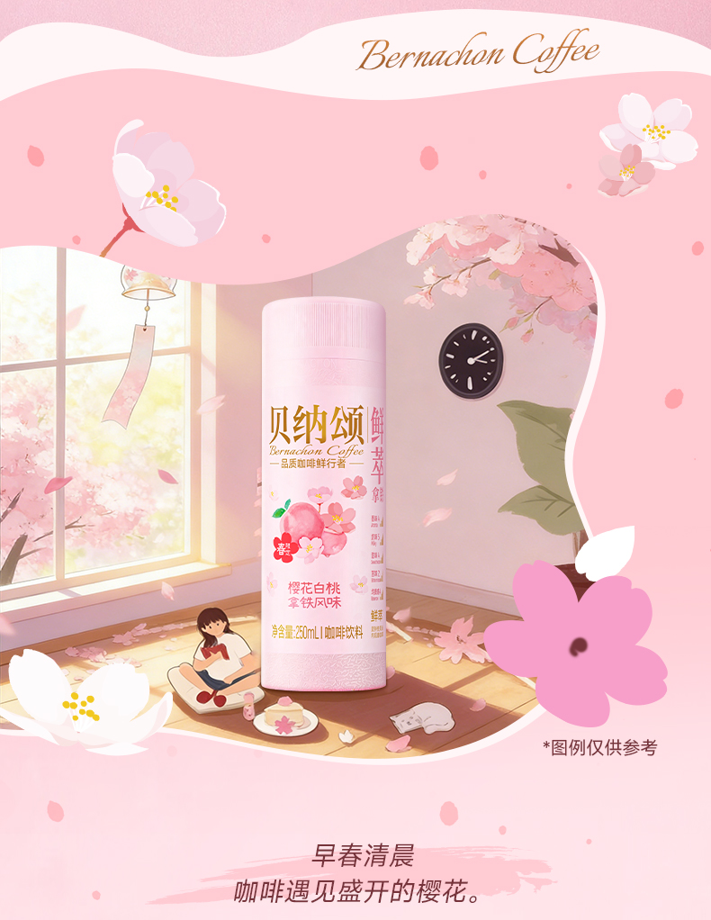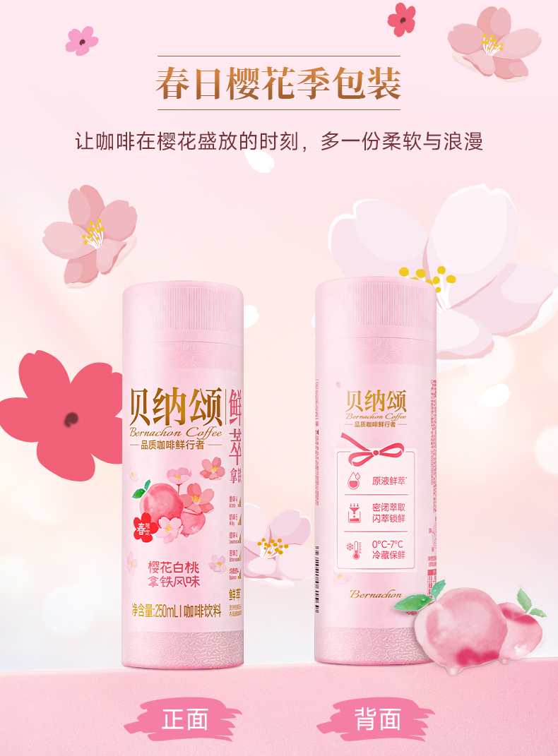 【新品】味全贝纳颂樱花白桃即饮咖啡250ml/瓶 拿铁风味咖啡饮料
