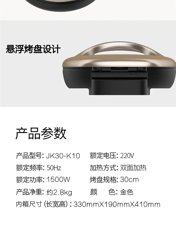 九阳(509356 )电饼档双面加热家用煎饼烙饼锅煎烤机JK30-K10电饼铛
