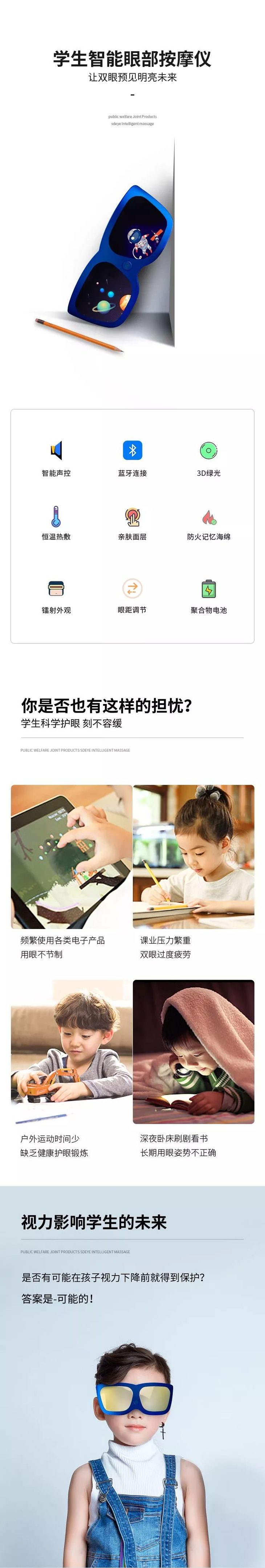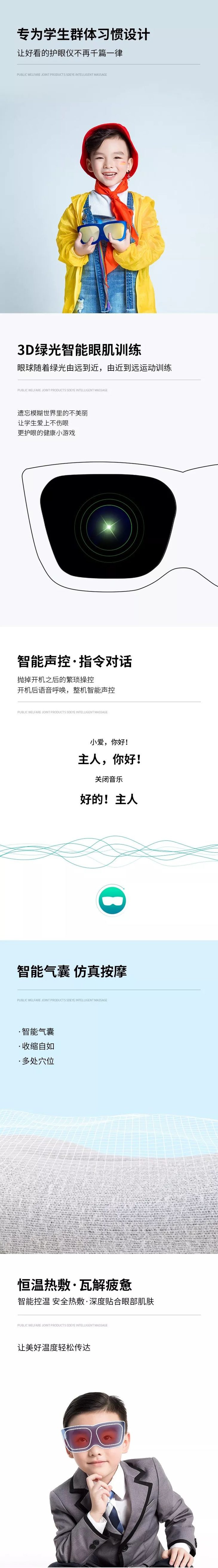 整机无线设计,简洁便携,下达语音指令即可调节各大功能设置。视多爱学生智能眼部按摩仪具备恒温热敷功能,可放松疲惫双眼;内置蓝牙功能,无限连接;机身面罩采用柔和亲肤的天鹅绒布,呵护学生稚嫩肌肤。精心甄选安全元件,多方位保障学生使用安全。