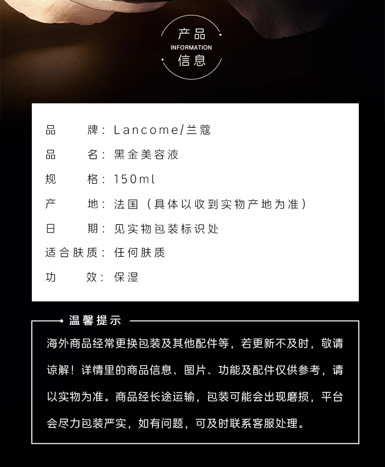 兰蔻Lancome臻宠美容液精华水黑金水化妆喷雾150ml 新版圆筒黑盖|