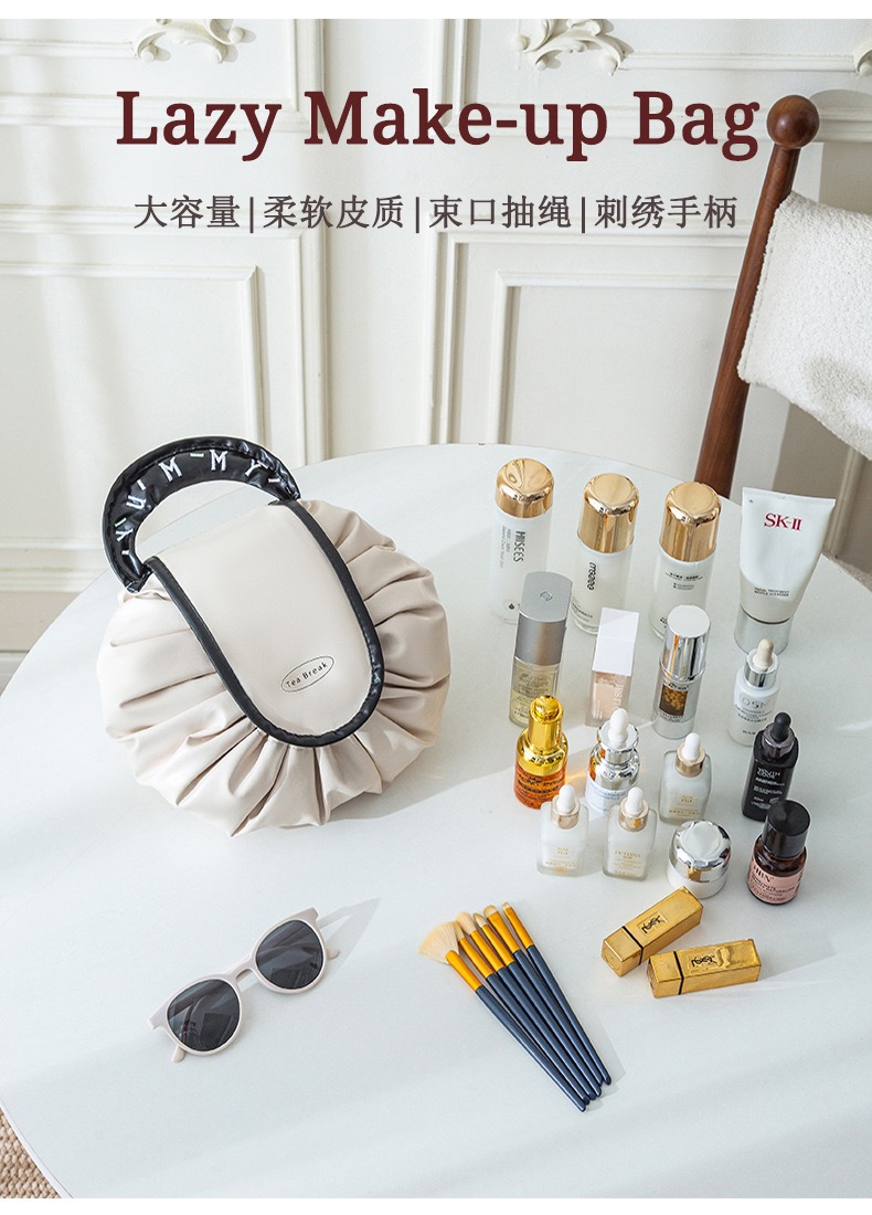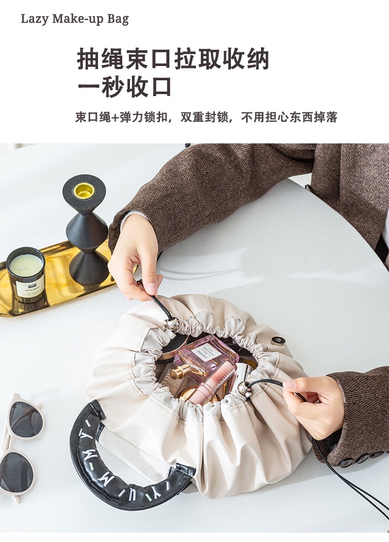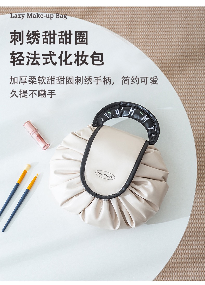 【YW】无忧购【甄选】可爱刺绣甜甜圈大容量防水便携收纳抽绳懒人化妆包AHIG34(截单后7天发货)