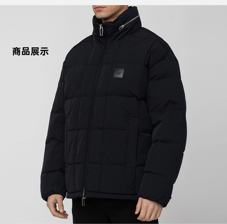 EMPORIO ARMANI 阿玛尼 男士鹰徽标贴花绗缝拉链羽绒服 深蓝色 6L1BS4 1NNLZ 0920