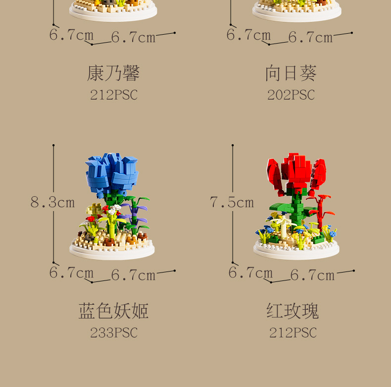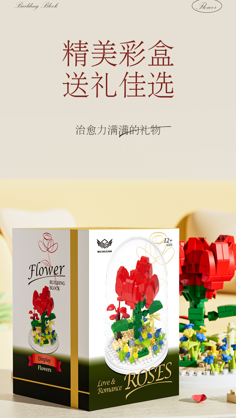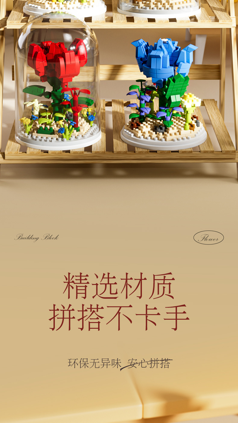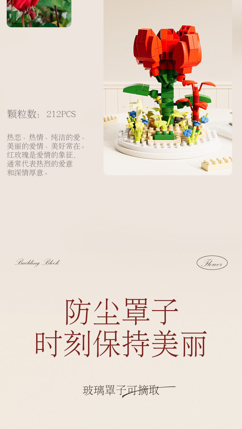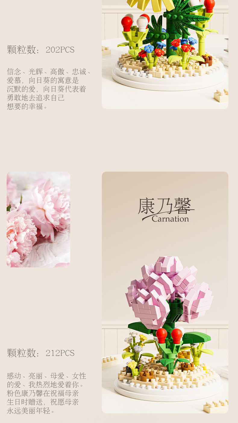 【岁岁礼】积木花玩具兼容乐高盆栽永生花,女孩系列摆件玩具礼物情人节拼装花! 特供
