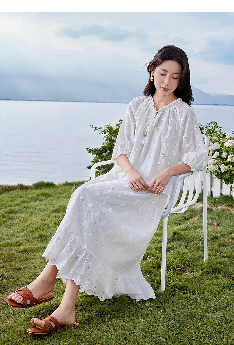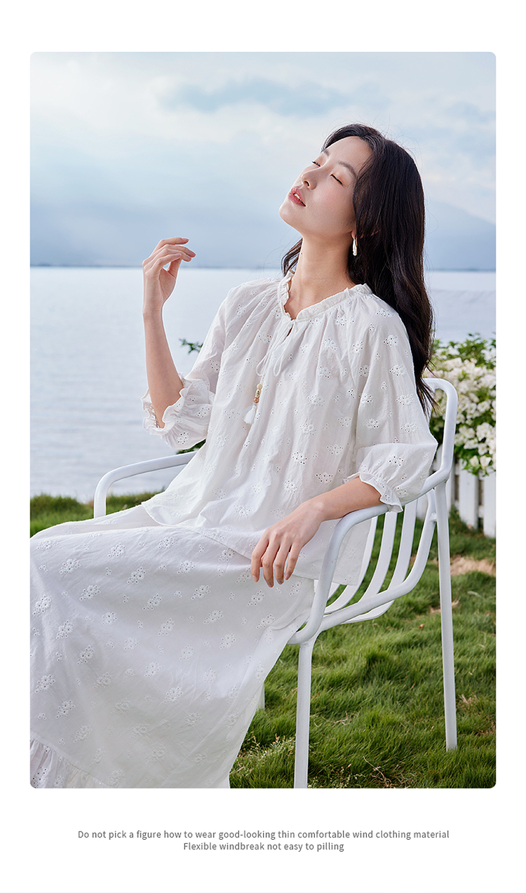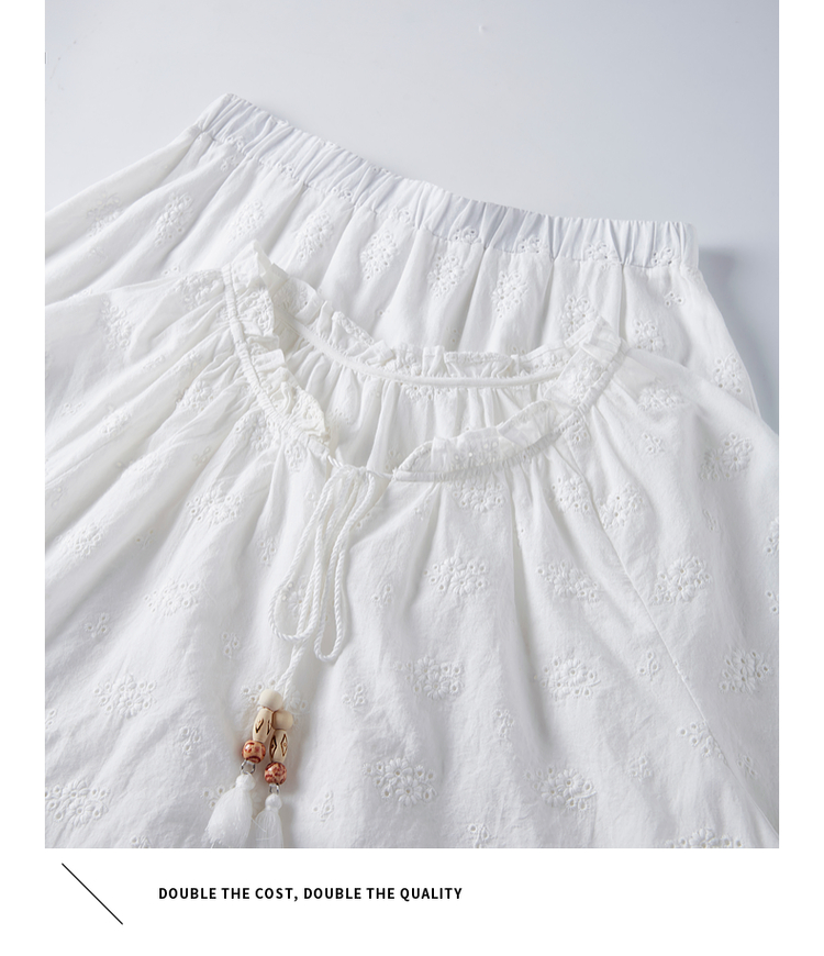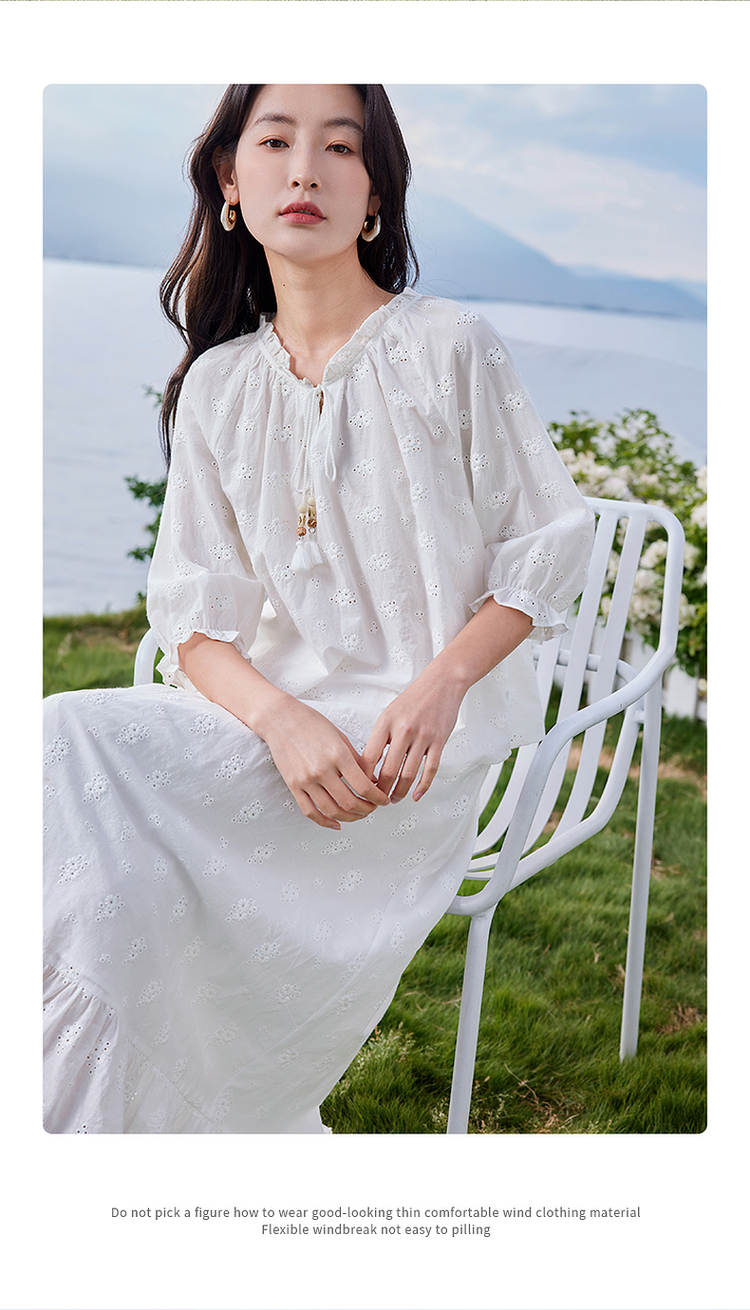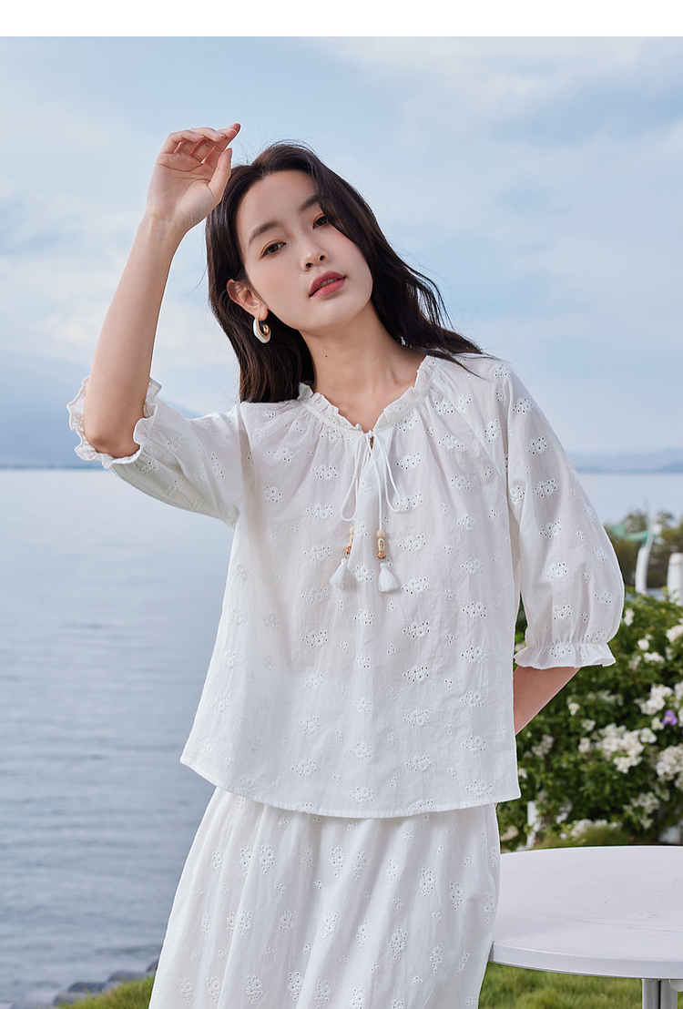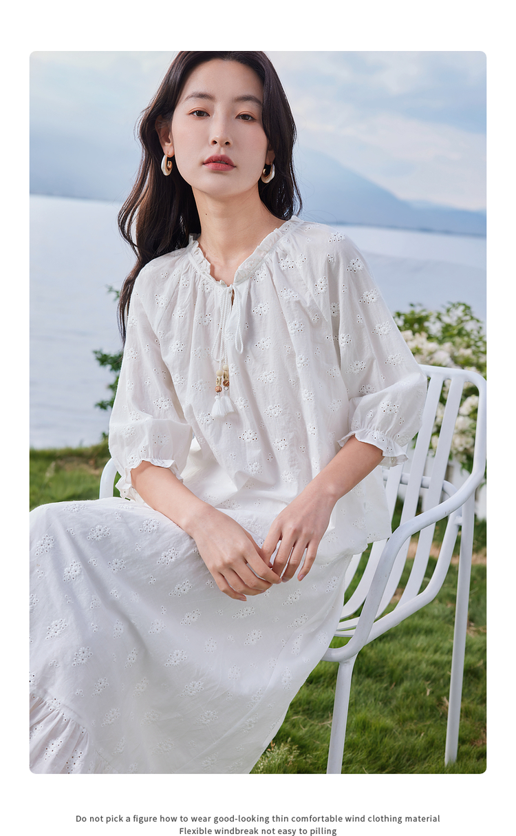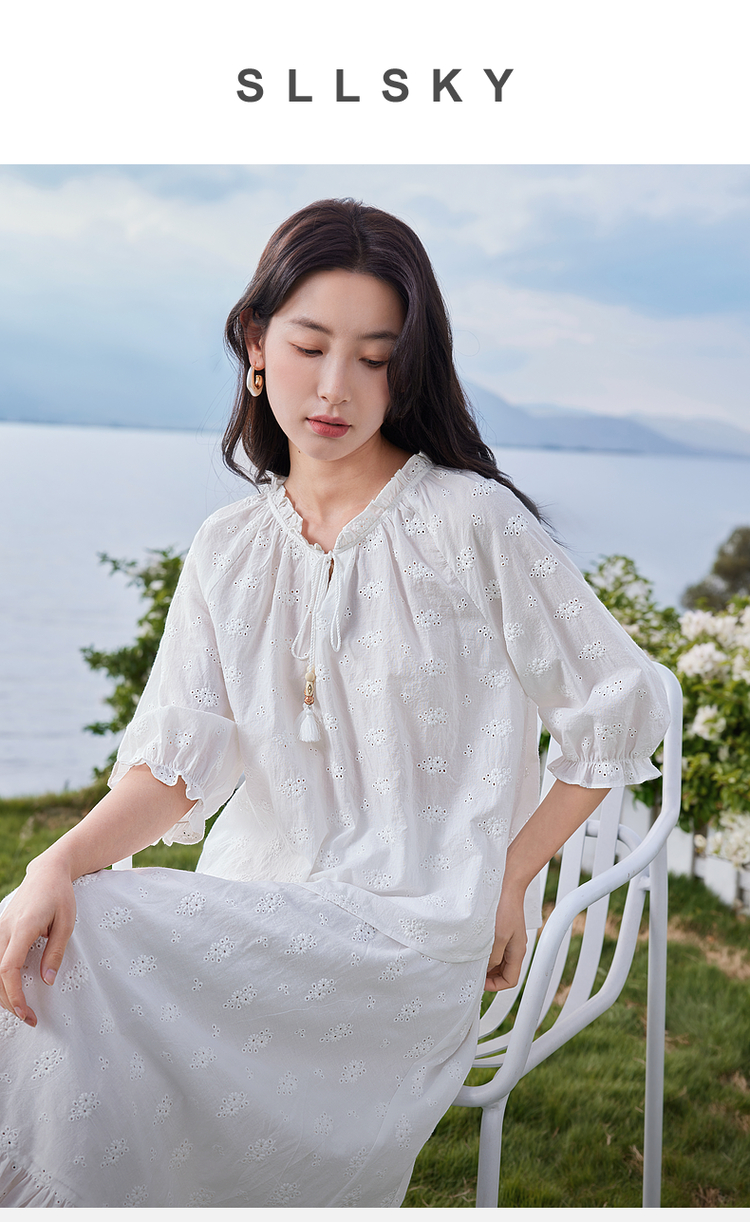 【专属特价】熙世界夏季套装2025新款法式木耳边绣花白色衬衫半身裙子两件套