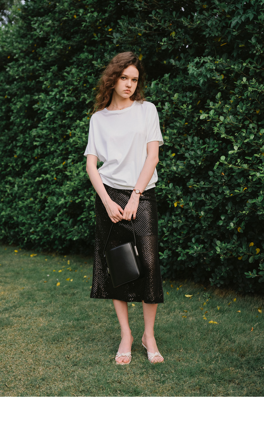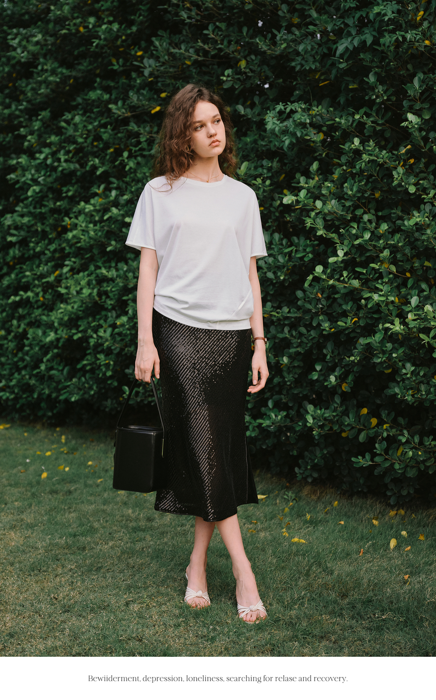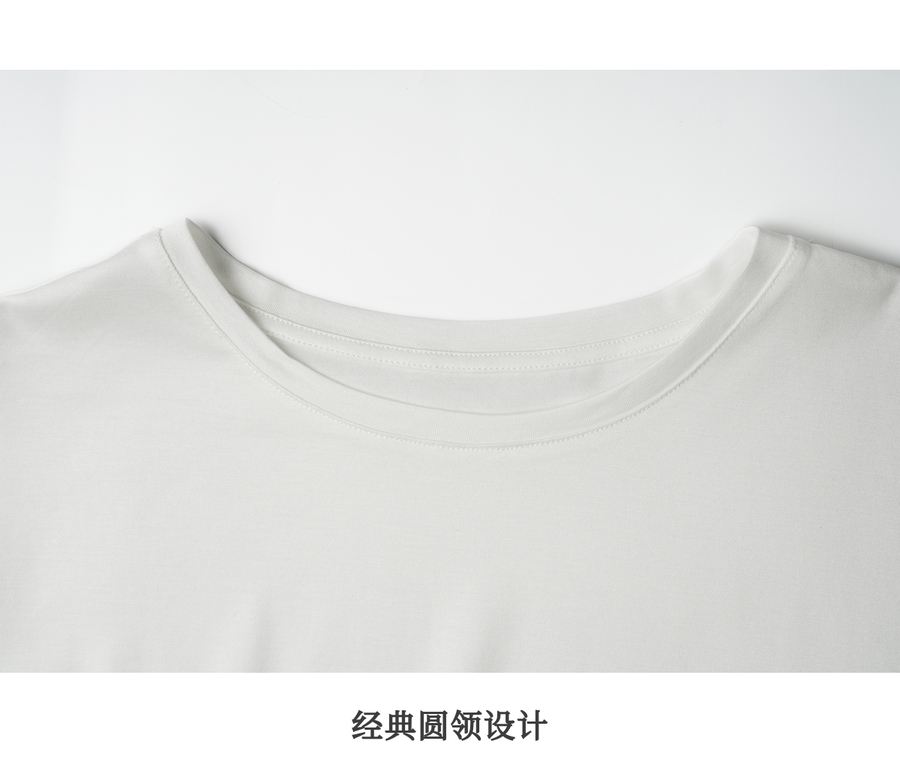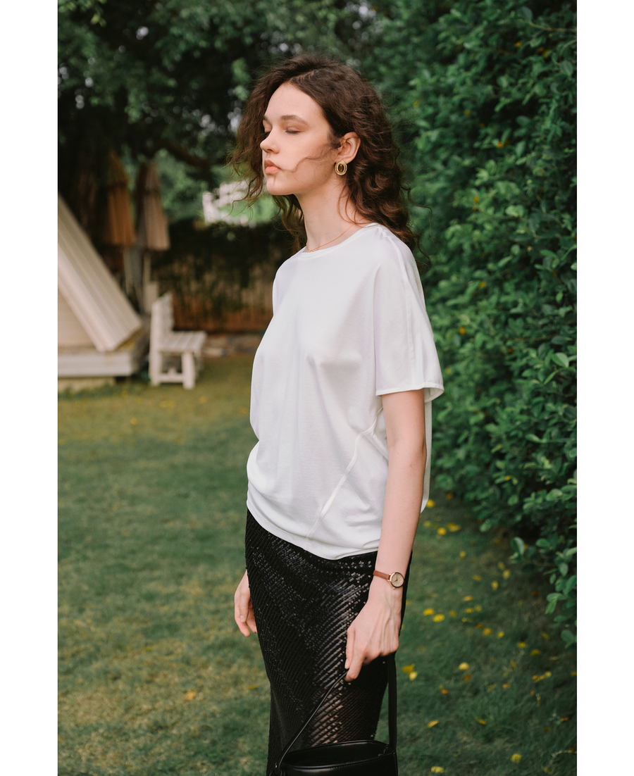 OLrain欧芮儿白色斜裁丝绵宽松T恤女夏季2025新款蝙蝠袖圆领上衣