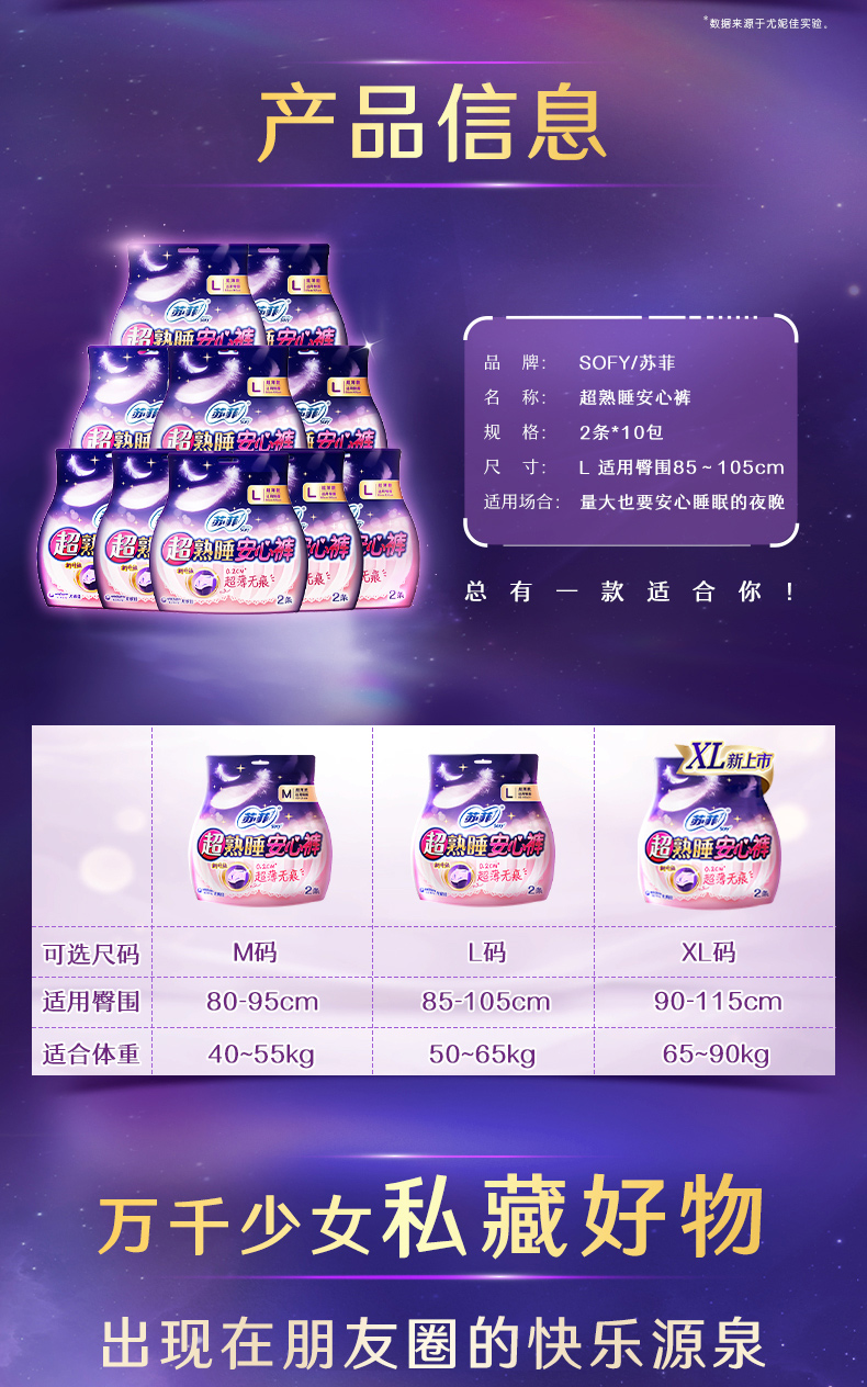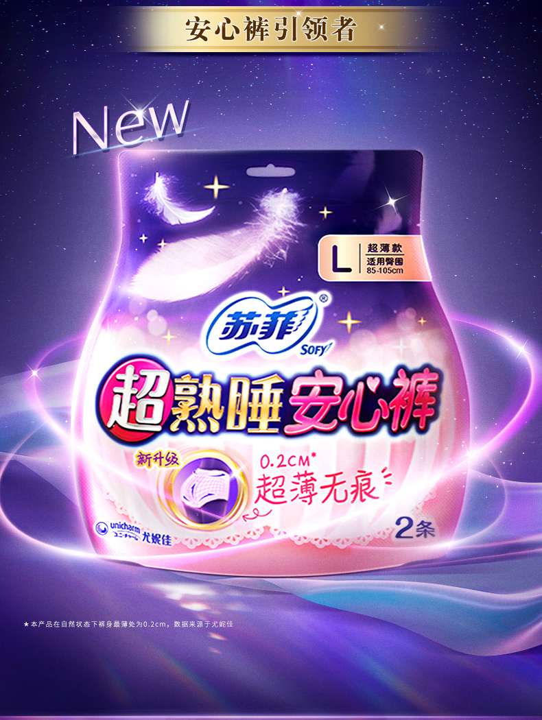 苏菲Sofy 超熟睡安心裤 0.2cm超薄夜用L码套装20片 裤型卫生巾 适用臀围85-105cm 安睡裤 夜安裤