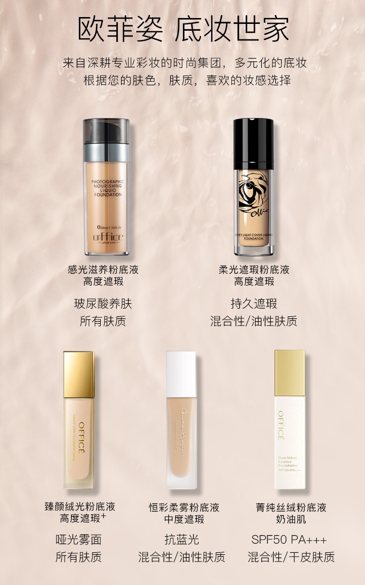 折后秒杀🎊OFFICE 欧菲姿菁纯丝绒粉底液 SPF50+PA+++(O.CZ136)