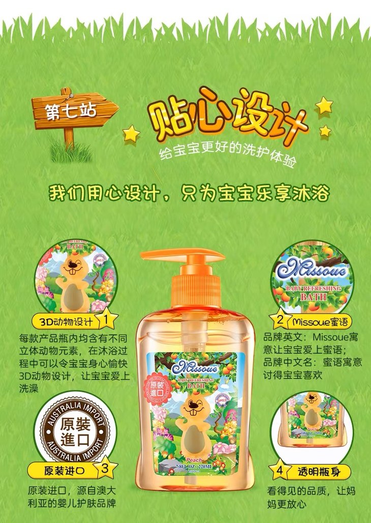 澳洲蜜语儿童沐浴露进口宝宝沐浴露婴儿新生儿无泪香桃味