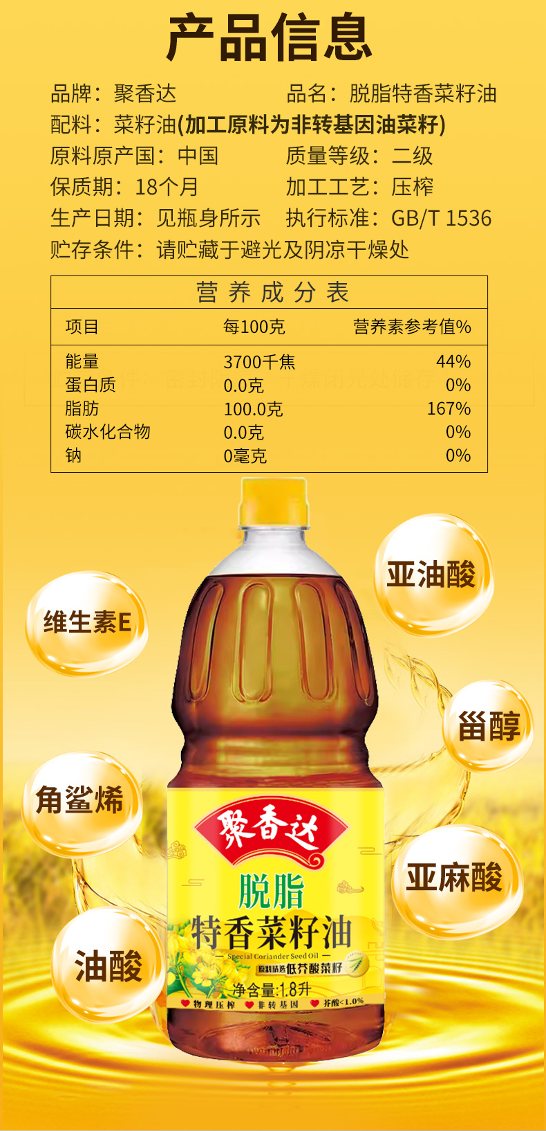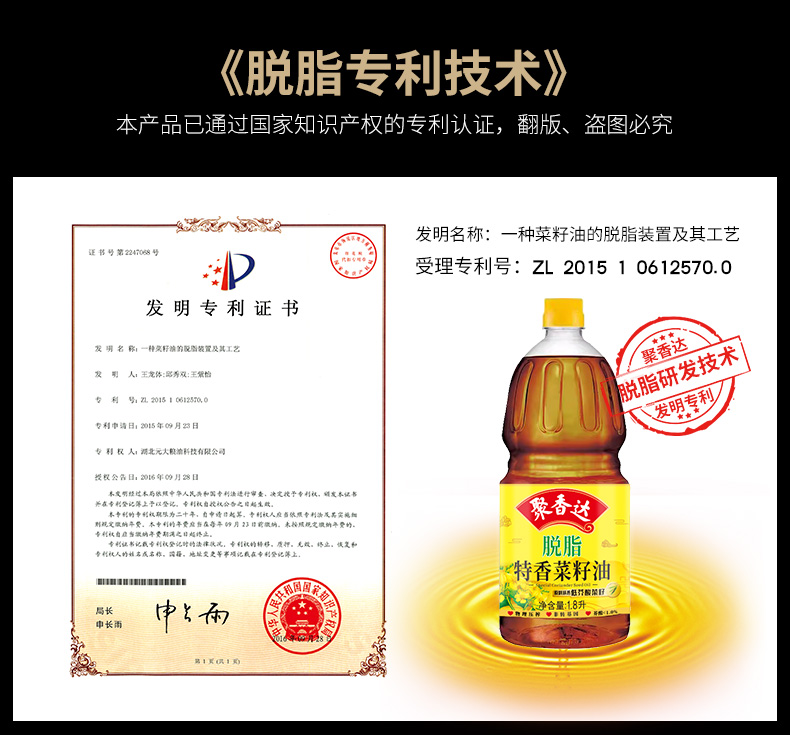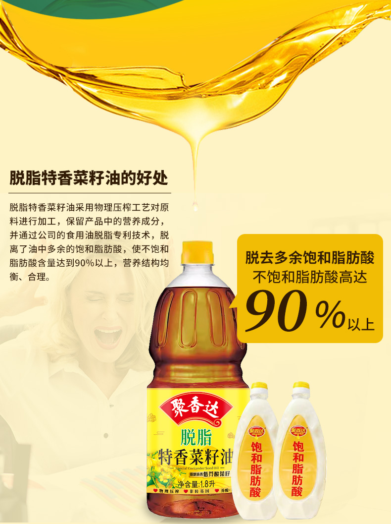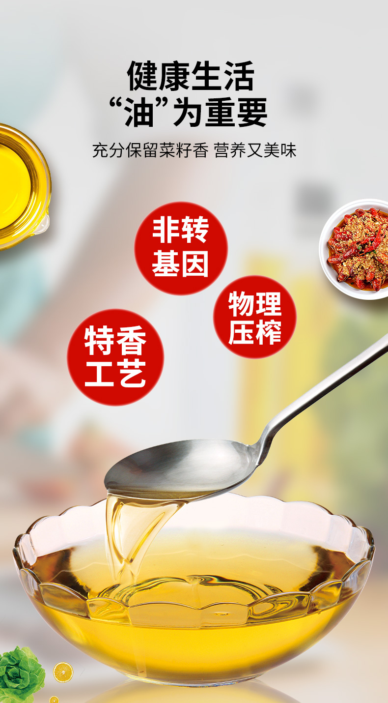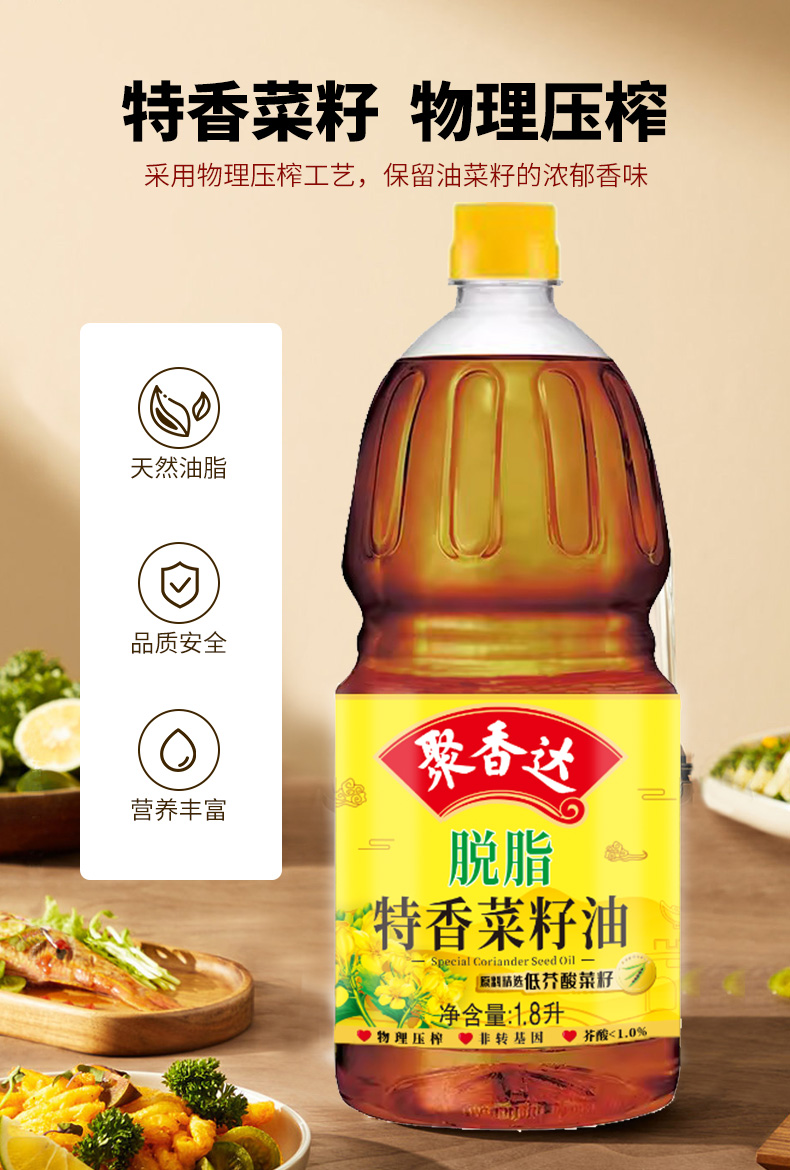 【严选】荆楚粮油 湖北襄阳元大非转基因聚香达脱脂特香菜籽油1.8L(厂家直发)