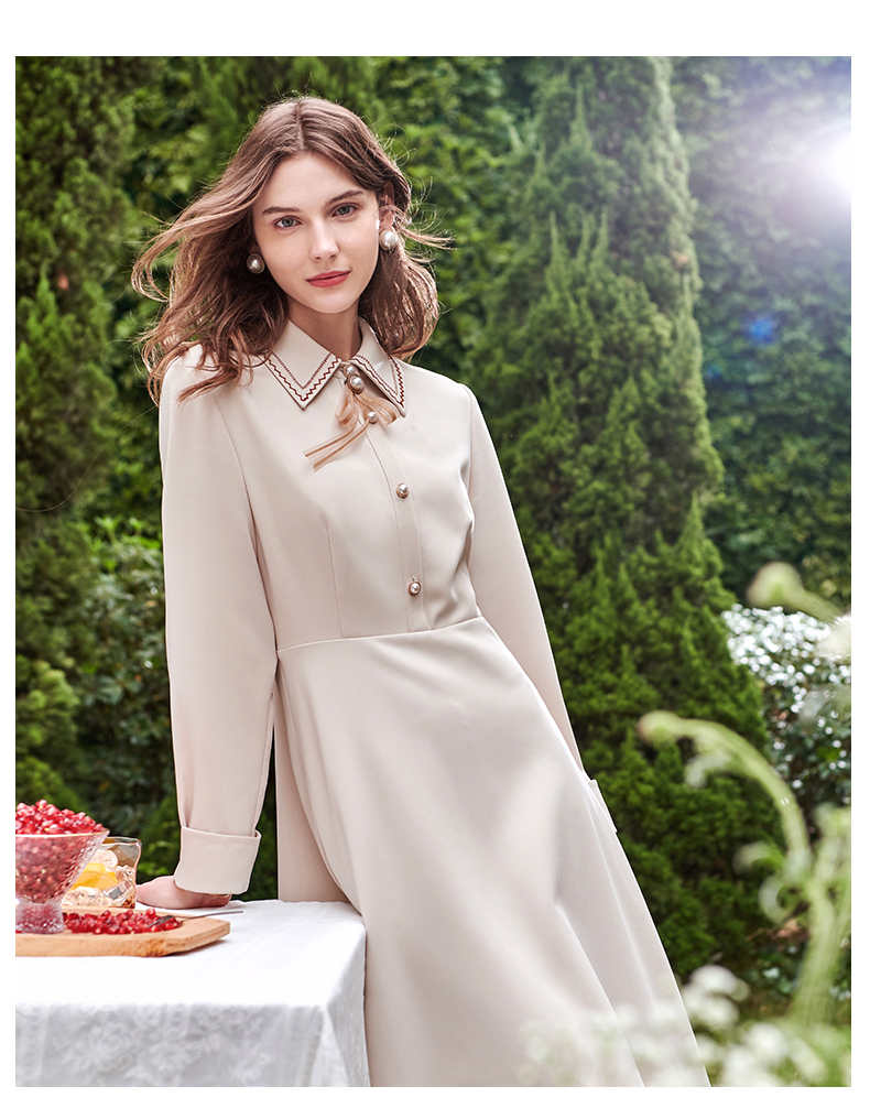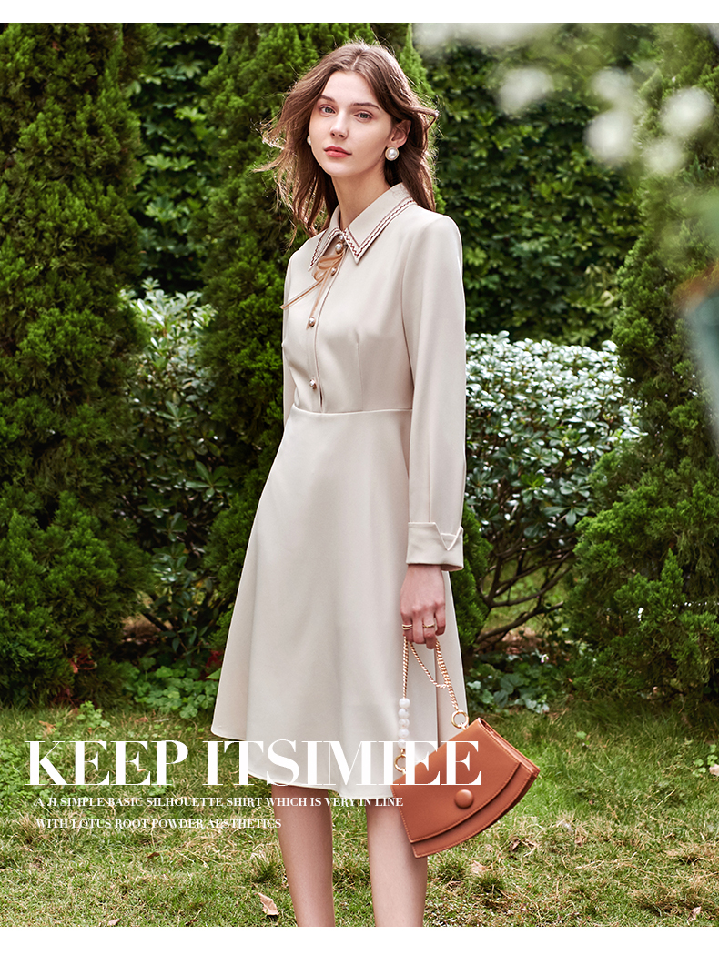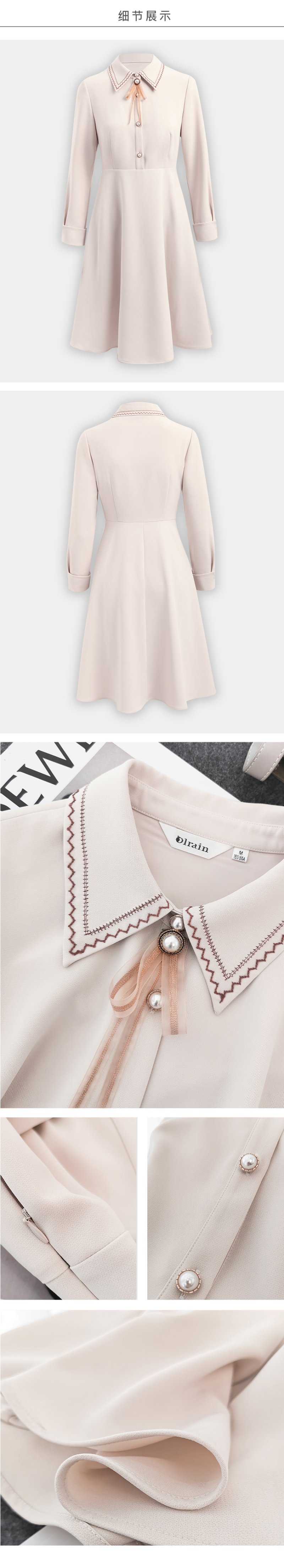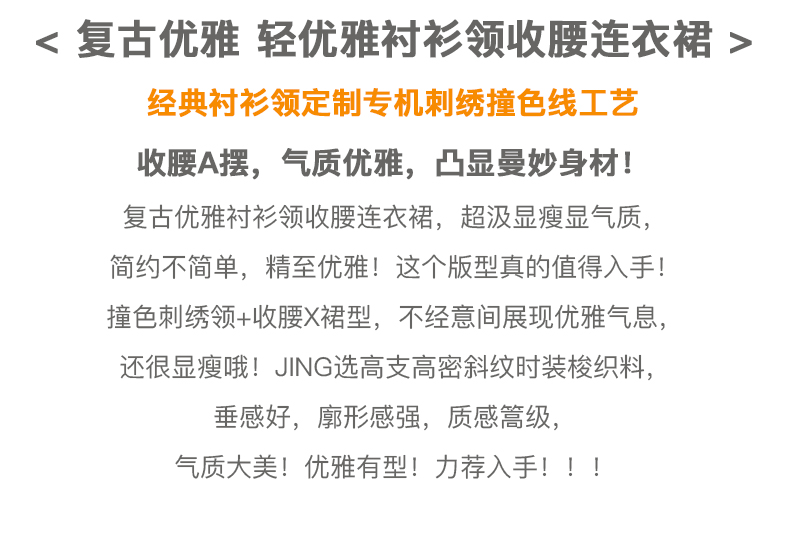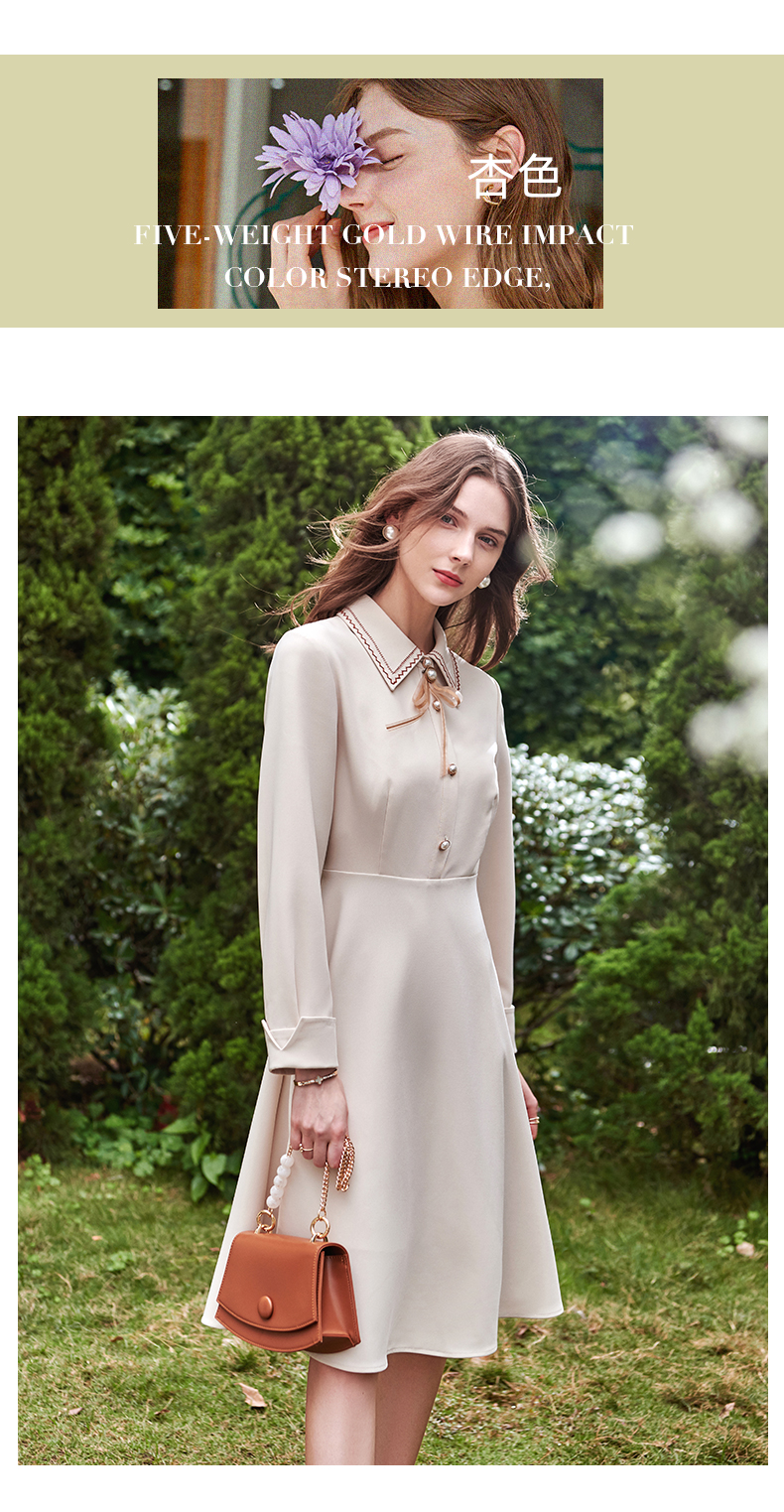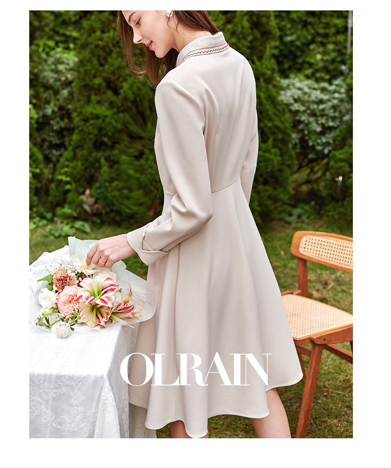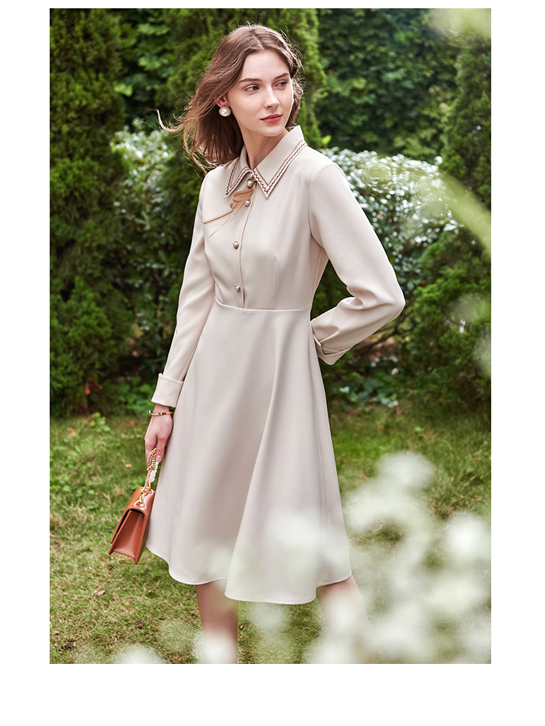 欧芮儿衬衫领连衣裙女春季新款收腰显瘦复古优雅简约休闲A字摆裙