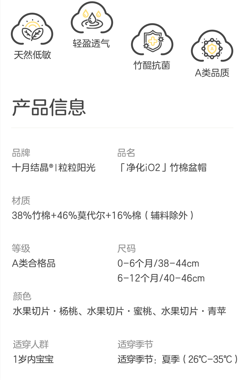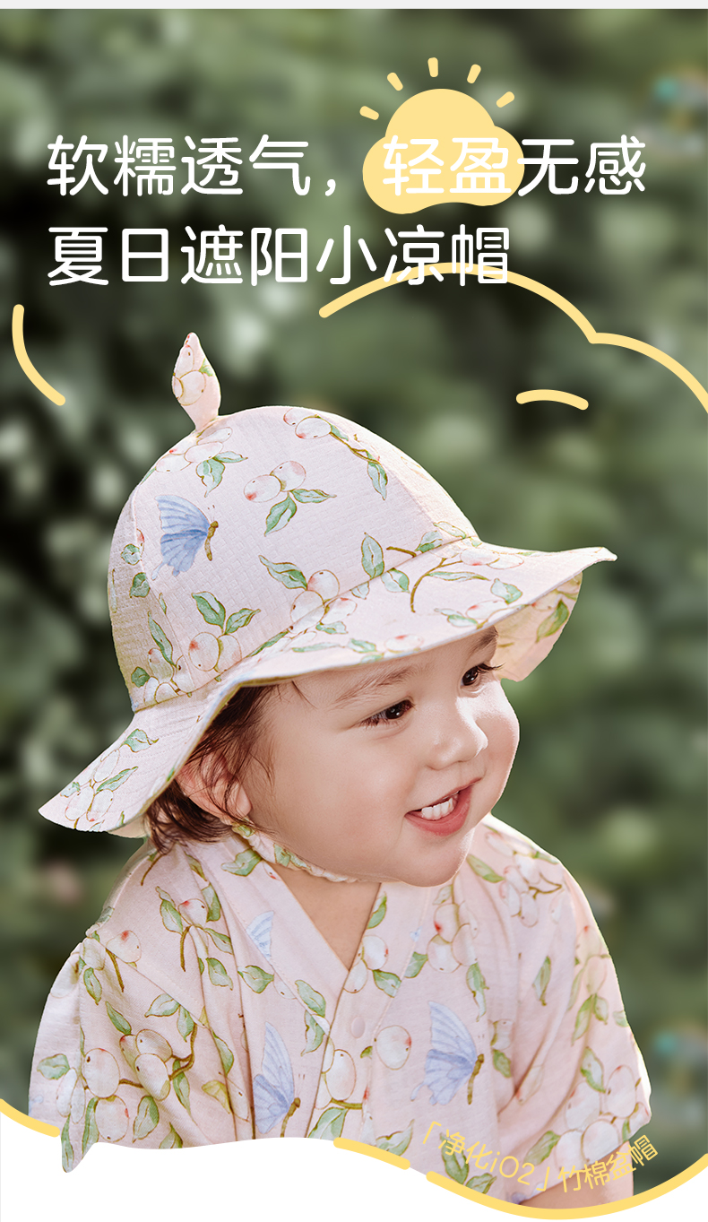 儿童竹棉盆帽凉感透气低敏遮阳防晒帽