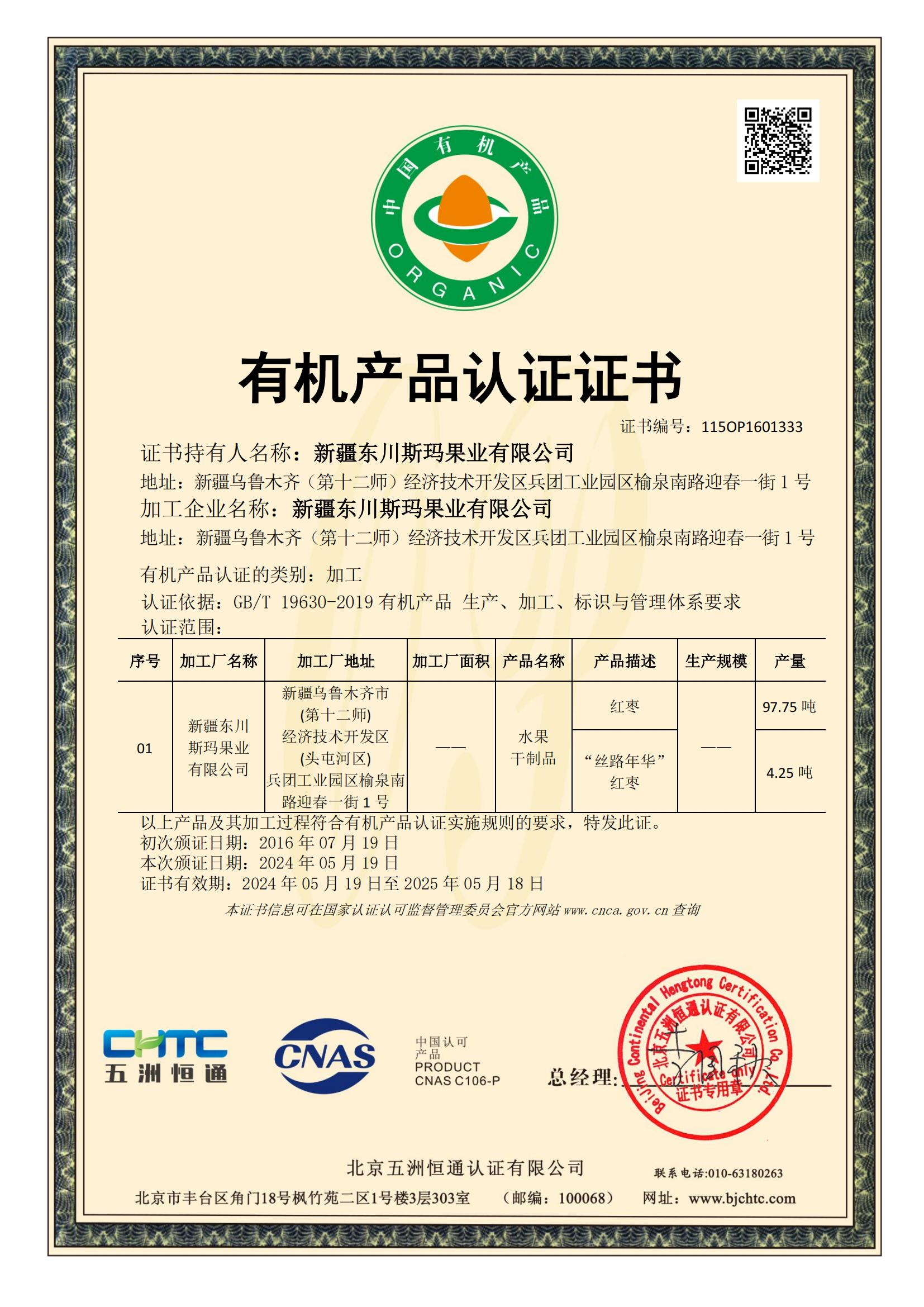 1. 产地和工厂双有机认证:新疆有机灰枣经过严格的有机认证,保证了其生长过程中不使用化学肥料和农药,更加健康安全。