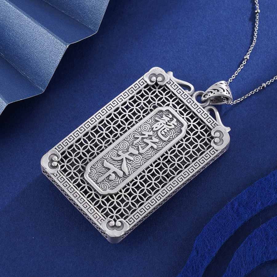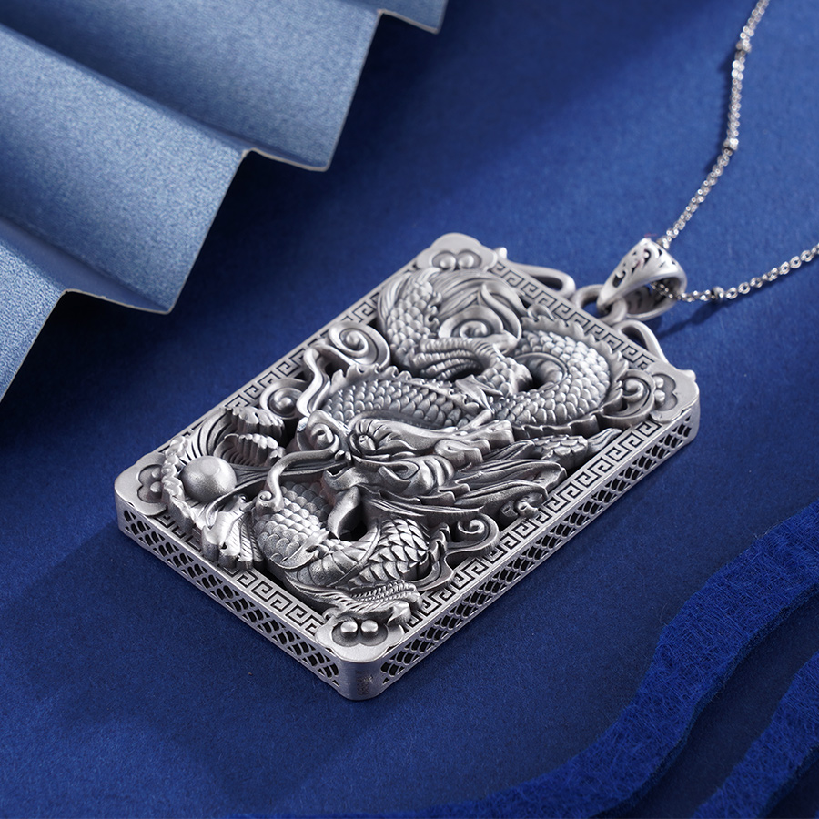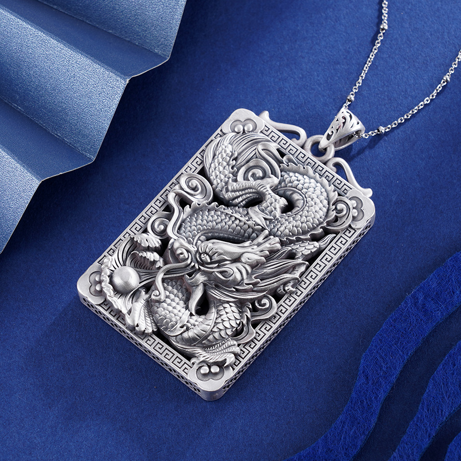 子佩集S999银【龙行天下】吊坠【JFQ025】(不含链)仿古方牌2402