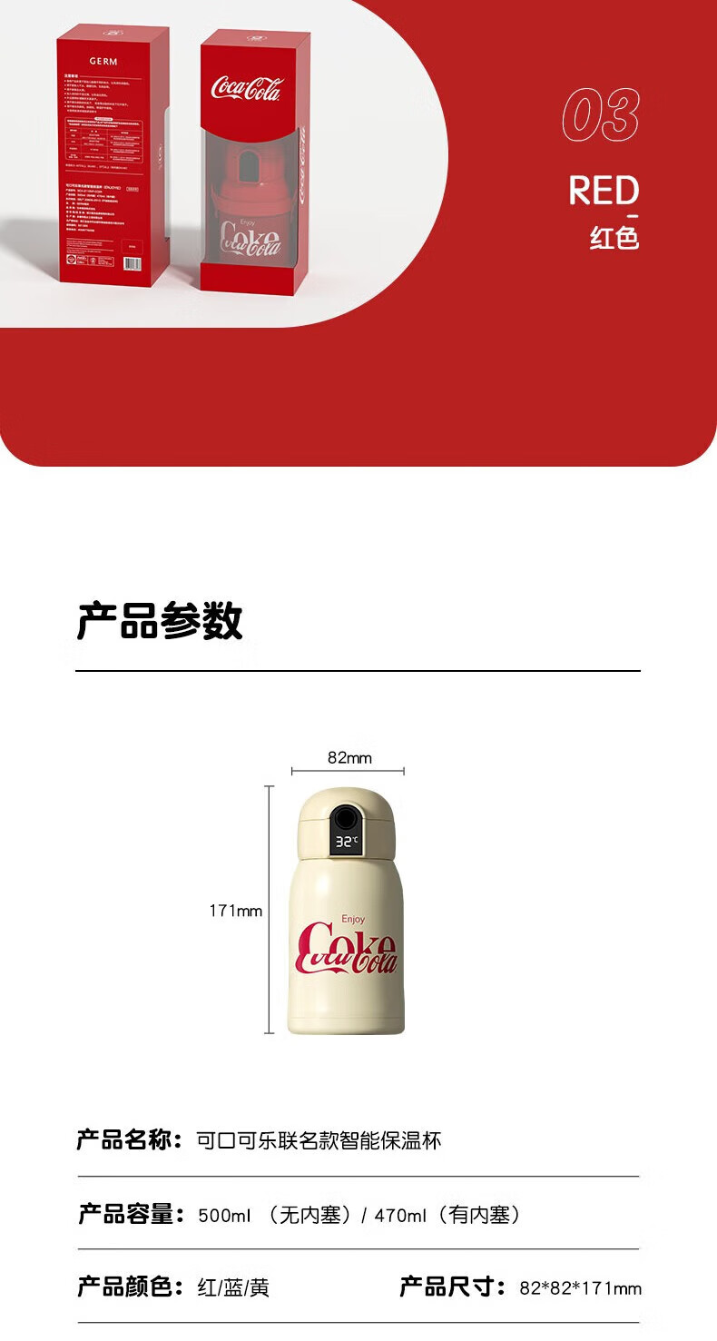 格沵(GERM)可口可乐联名款智能保温杯500ml