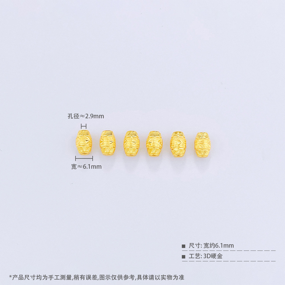 【限时克减150元】足金 【无成色字印】3D硬金散珠转运珠空心车花米珠筒珠转运金珠路路通手串配件Diy手串配件/6粒(V3DSC00388)(预售产品下单后不退款不退货不换货不补差价)