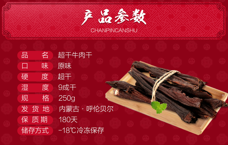 呼伦贝尔250g手撕风干牛肉干2袋包邮