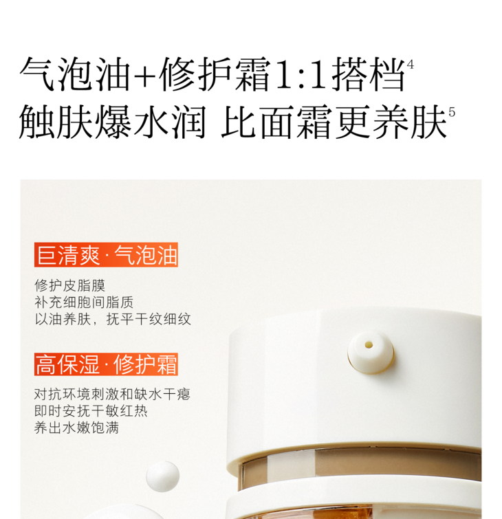 hfp双管气泡霜 高补水保湿精华油修护滋润淡纹乳液面霜男女