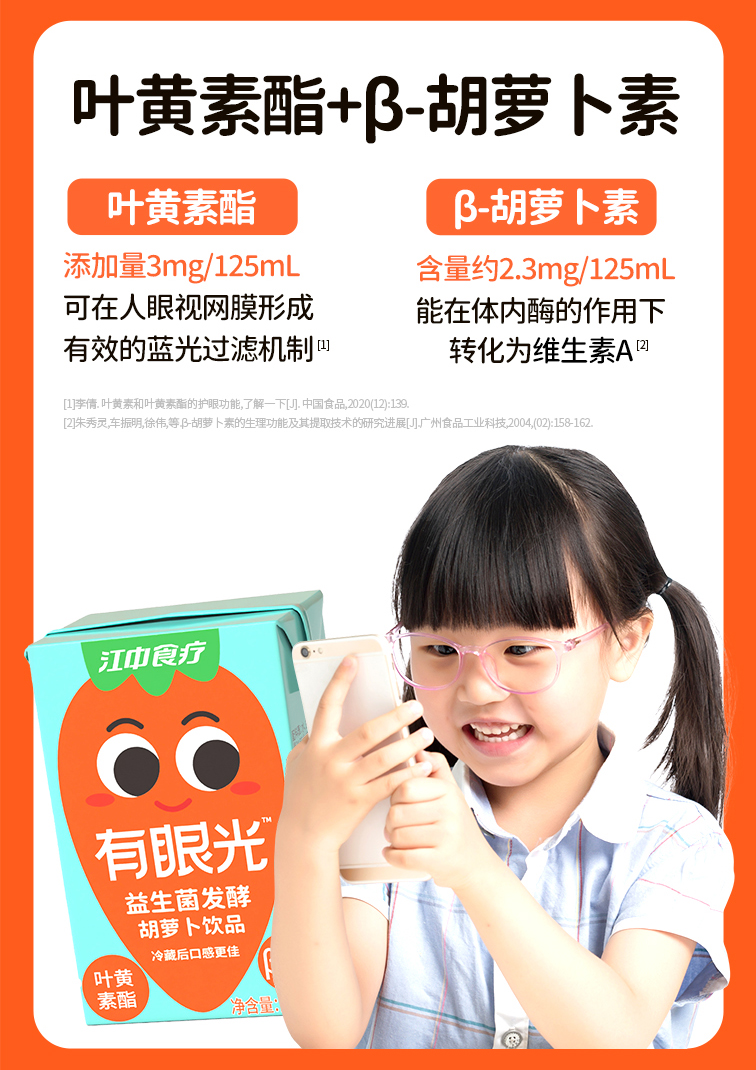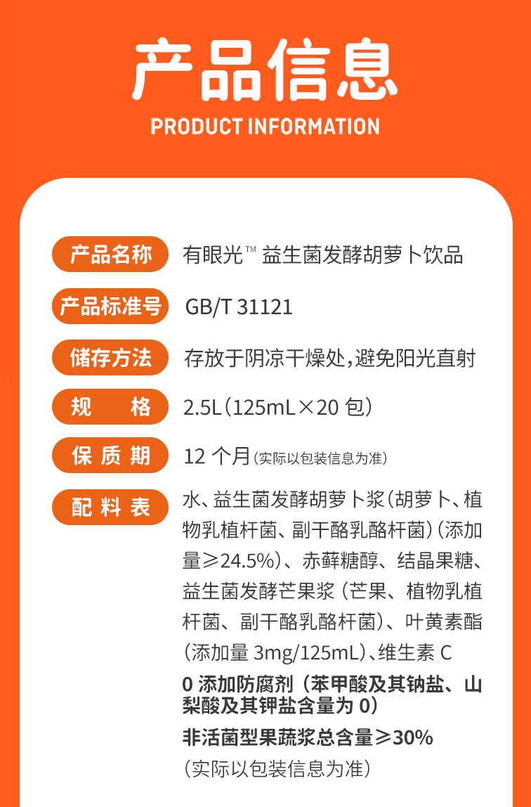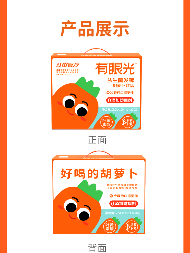 【5折】20包*江中食疗有眼光益生菌发酵胡萝卜饮品125mL/包 保质期至2026年10月