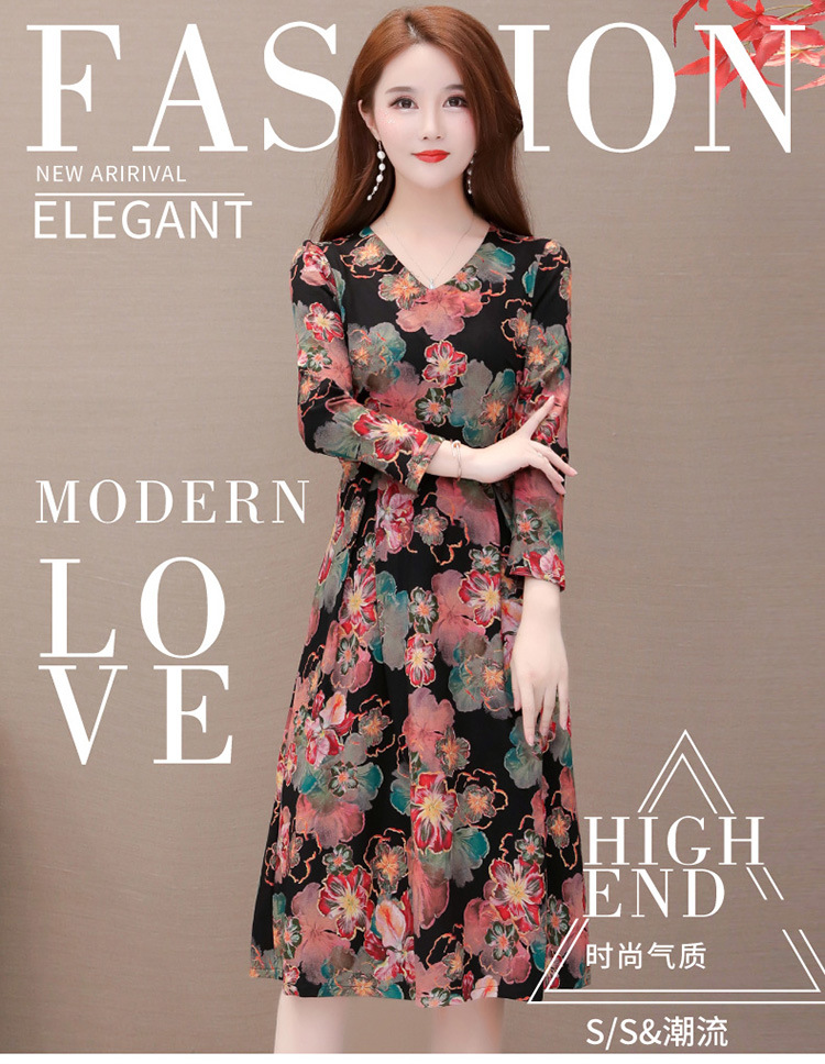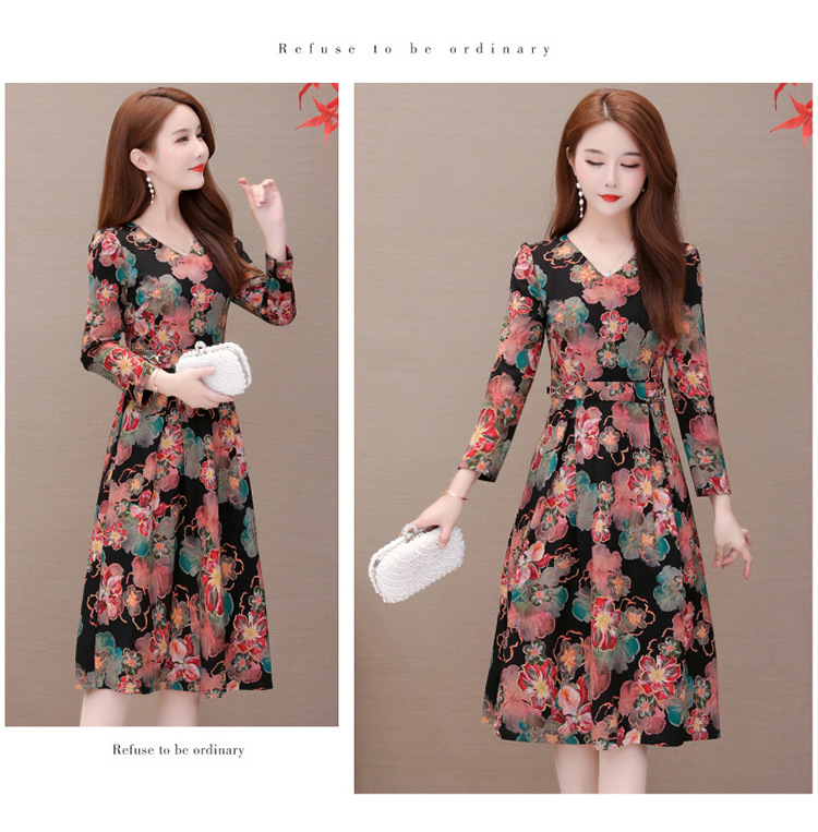 时尚连衣裙印花裙,中长款A字裙QYM-LRX-20966-Y