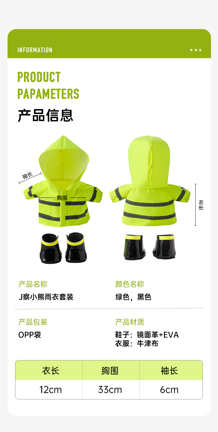 【J察小熊雨衣套装】儿童毛绒公仔熊熊雨衣雨鞋套装配件布娃娃玩偶替换衣服