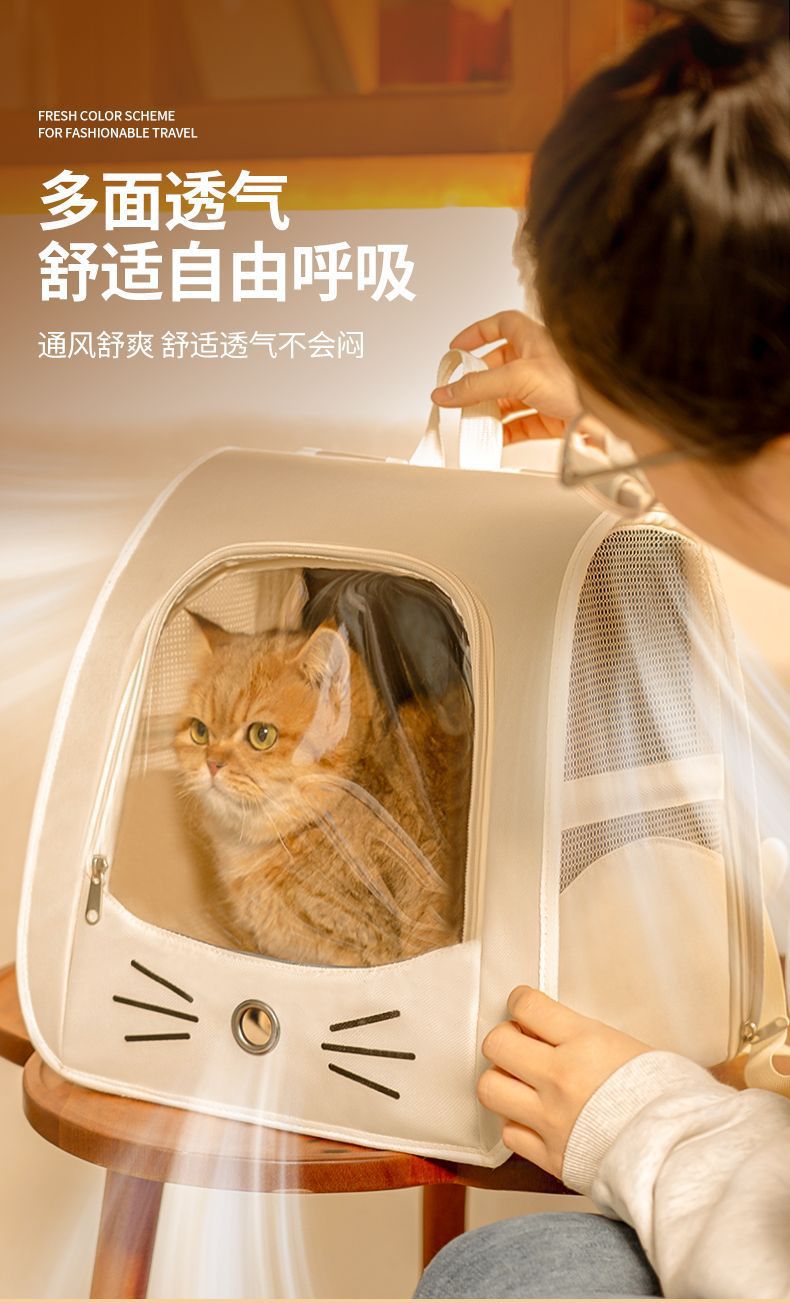 【宠物背包笼】猫咪防抓猫包 外出旅行折叠包 书包多功能车载安抚舱双肩