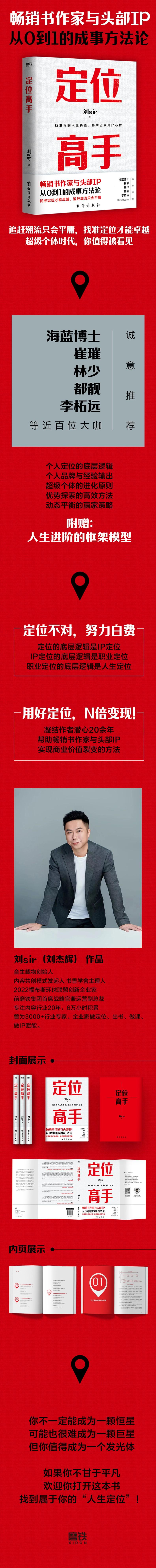 "畅销书作家与头部IP 从0到1的成事方法论 定位不对,努力白费 用好定位,N倍变现 海蓝博士 崔璀 十点读书林少 都靓 李柘远 等近百位大咖 诚意推荐"