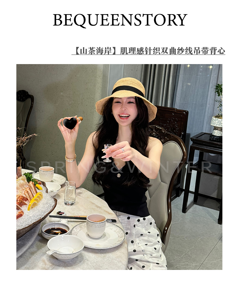 BeQueenStory【山茶海岸】舒适凉爽透气肌理感针织双曲纱线吊带背心