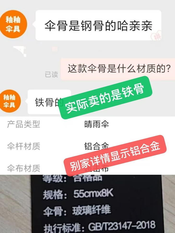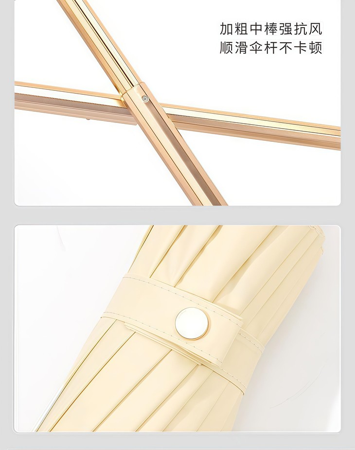 💥重点对比:伞骨真相! 伞骨很粗很牢固,能抗9级大风 但伞重仅仅395克,一杯奶茶的重量! 核心用料:铝合金+纤维骨结合的伞骨 ⚠很多卖家为了卷价格战 写“铝合金”实际发铁骨伞 收到货,吸铁石一验便知!